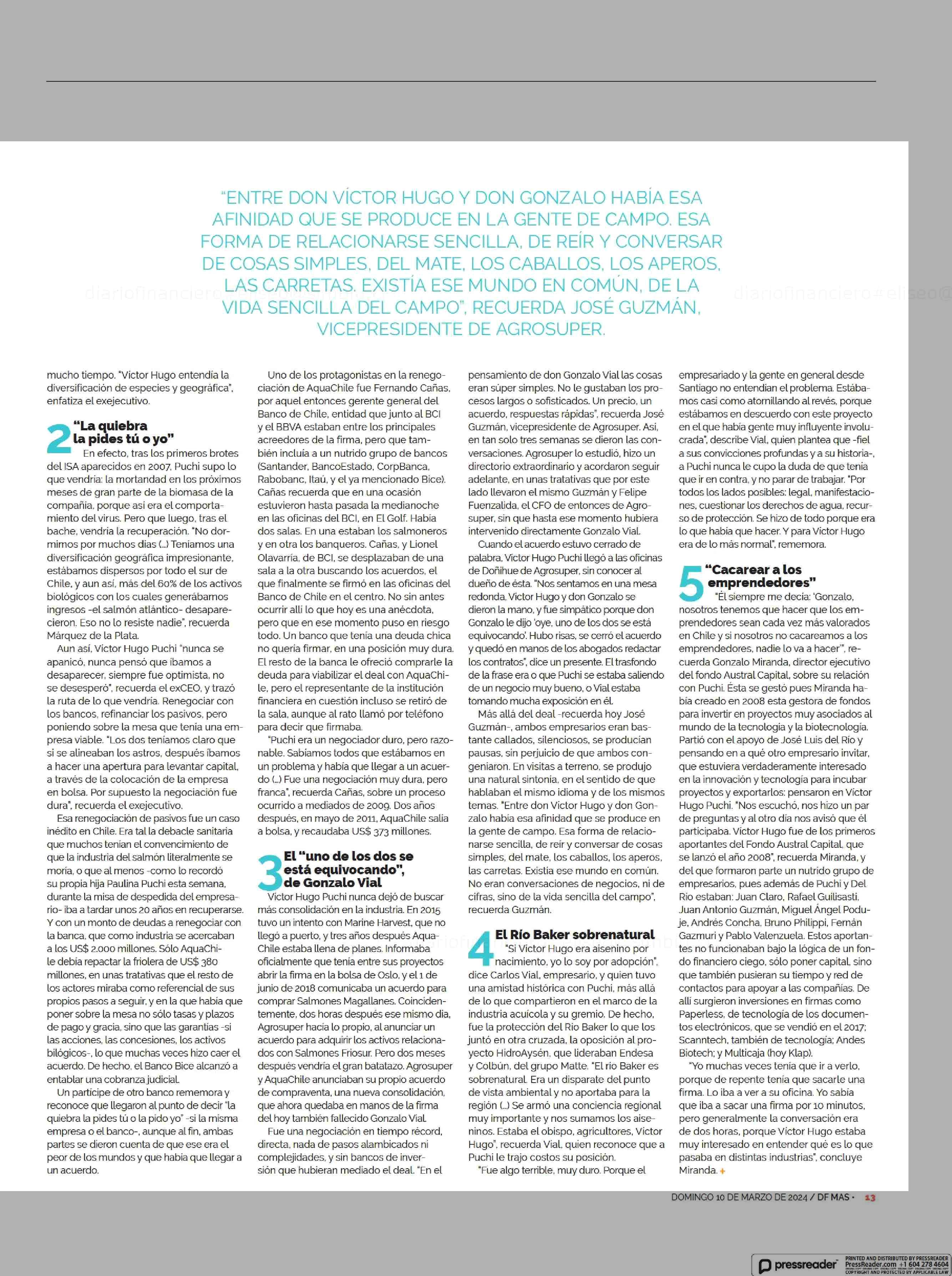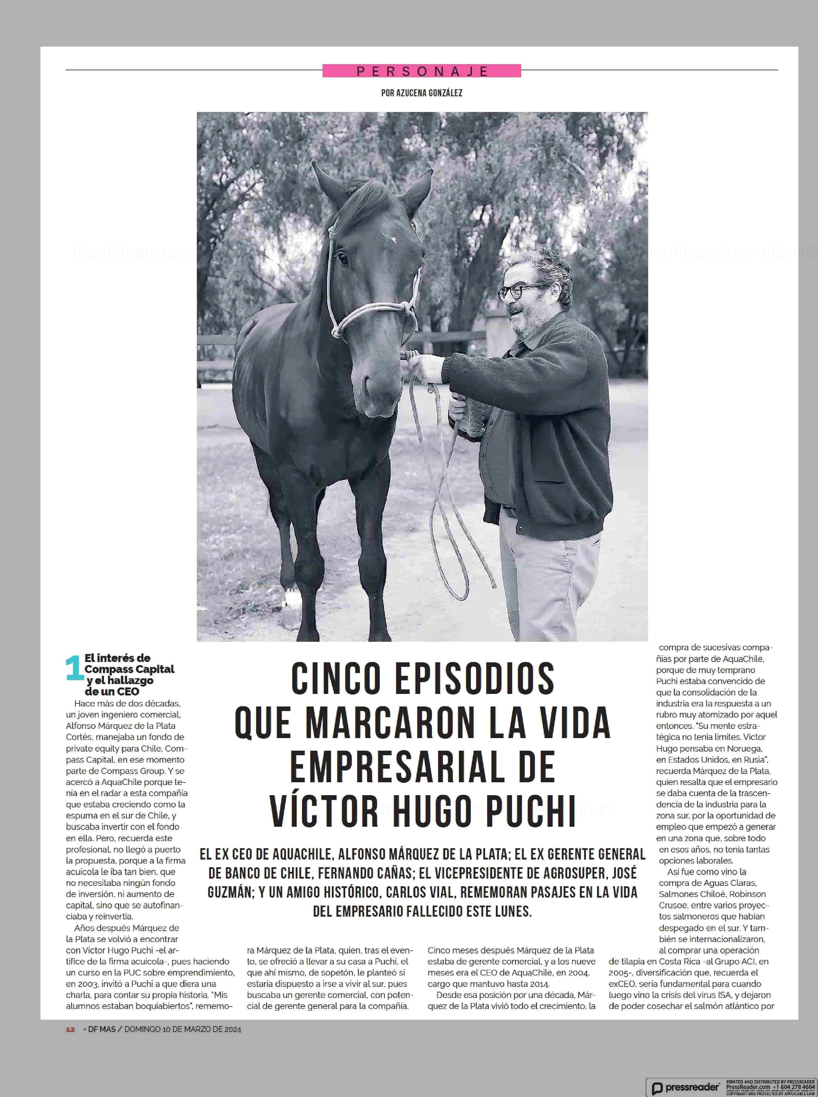 CINCO EPISODIOS QUE MARCARON LA VIDA EMPRESARIAL DE VICTOR HUGO PUCHI 10-03-2024 Diario Financiero |