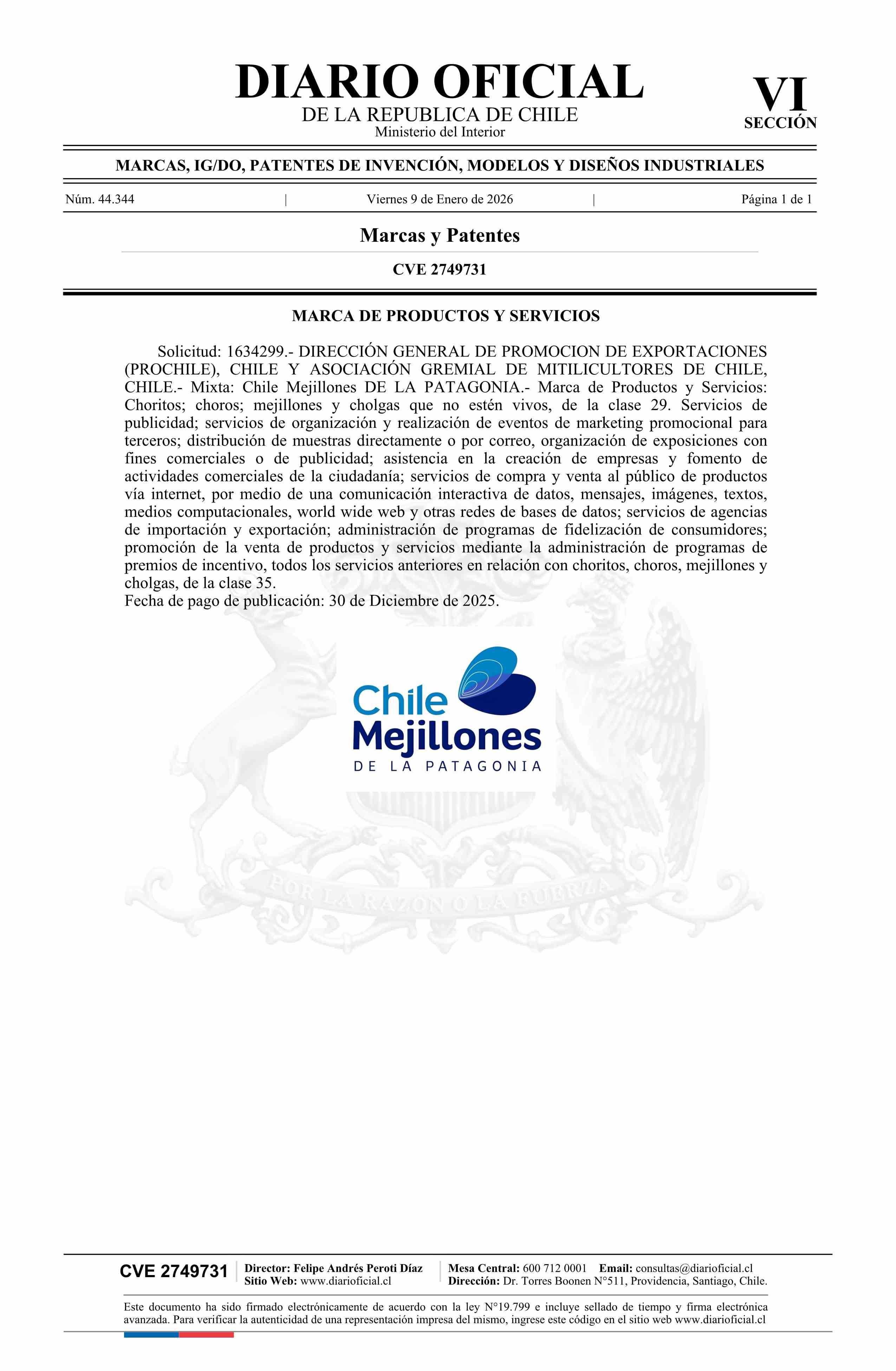 Solicitud número 1634299.- Chile Mejillones DE LA PATAGONIA 09-01-2026 Diario Oficial Edición Electrónica |