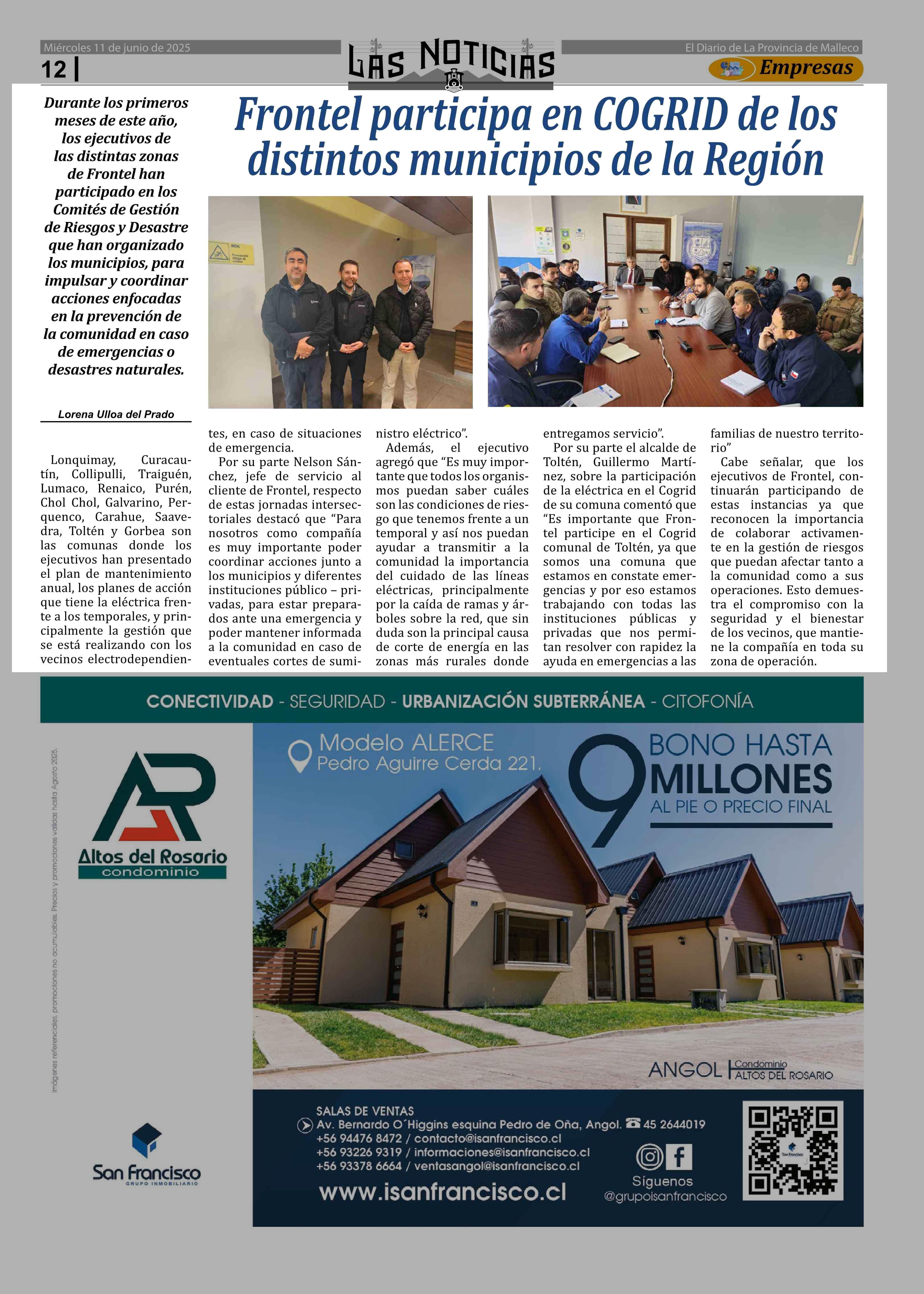 Frontel participa en COGRID de los distintos municipios de la Región 11-06-2025 Las Noticias |