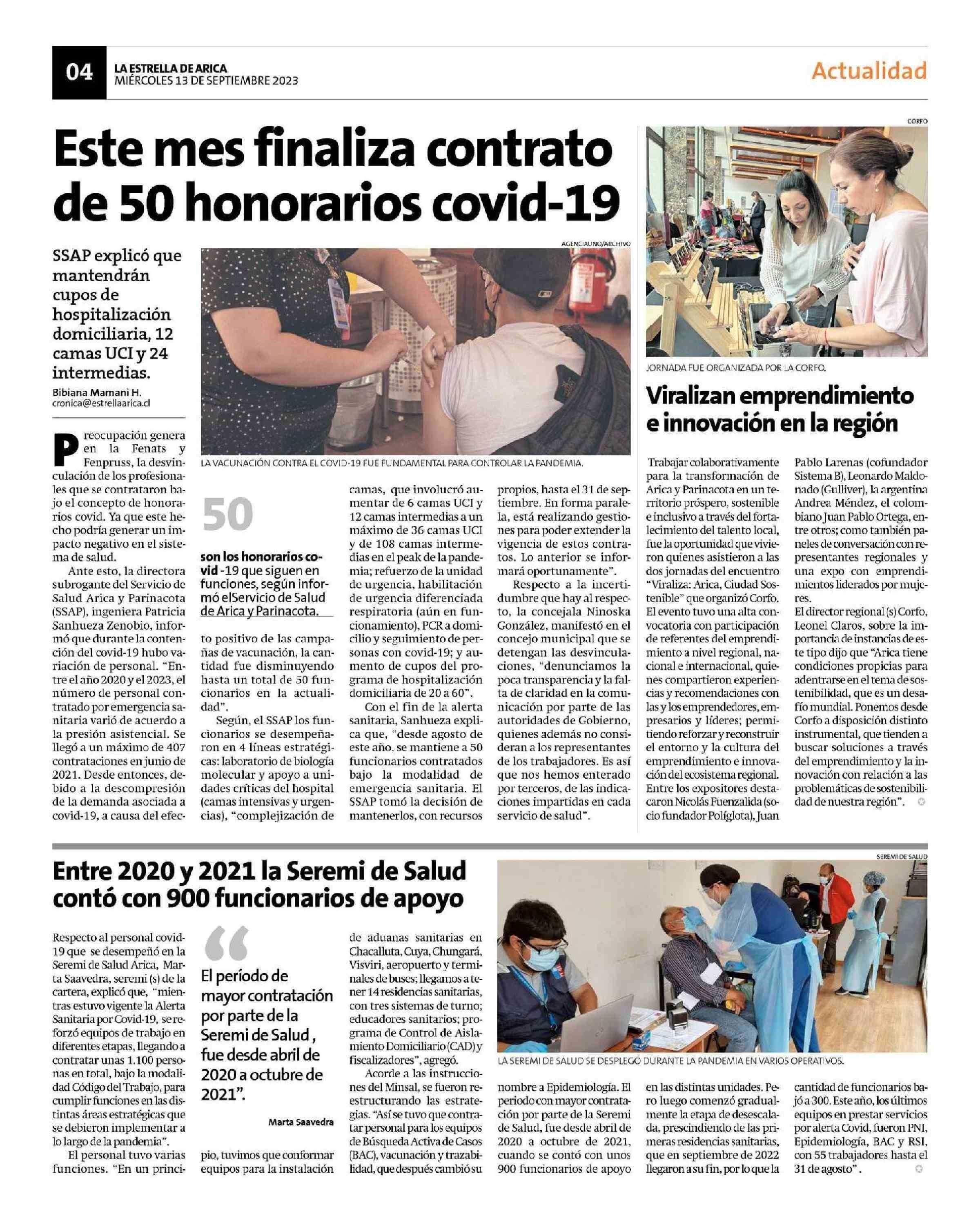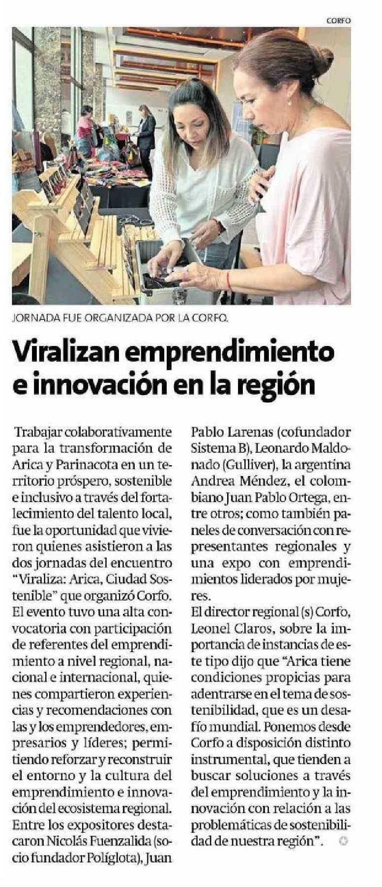 Viralizan emprendimiento e innovación en la región 13-09-2023 La Estrella de Arica |