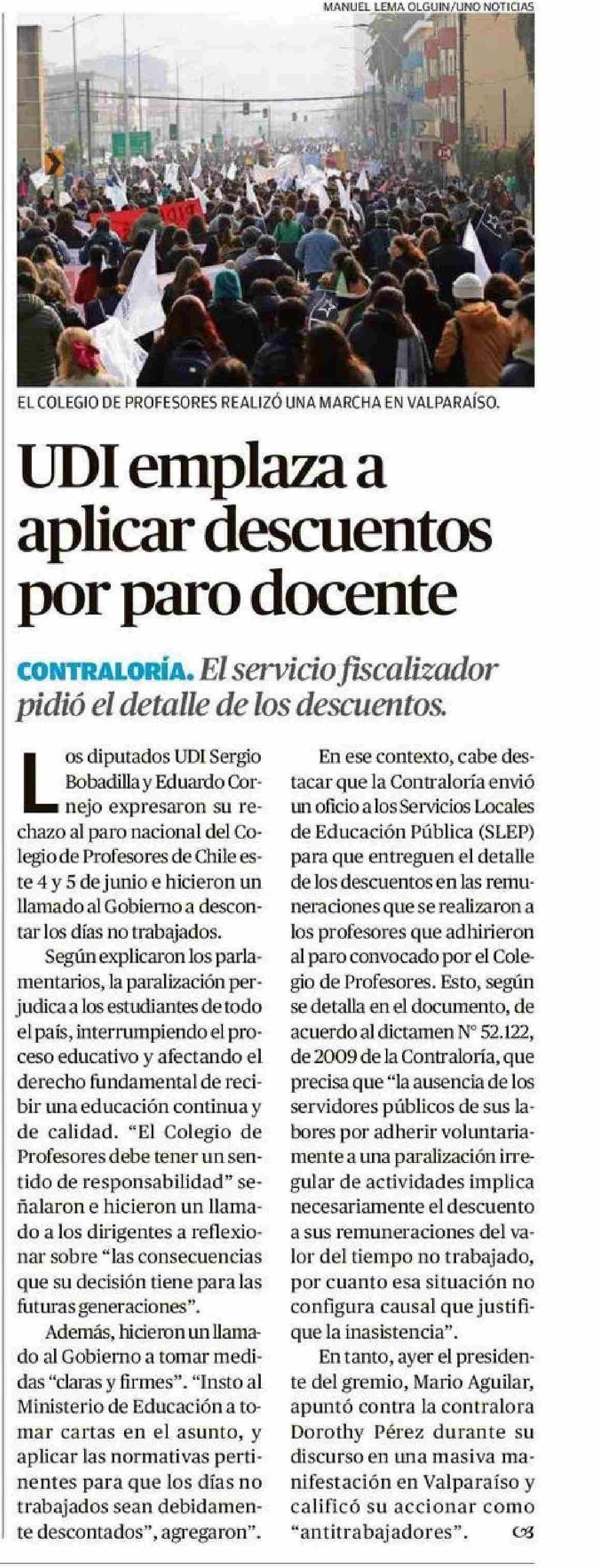 Título: UDI emplaza a aplicar descuentos por paro docente