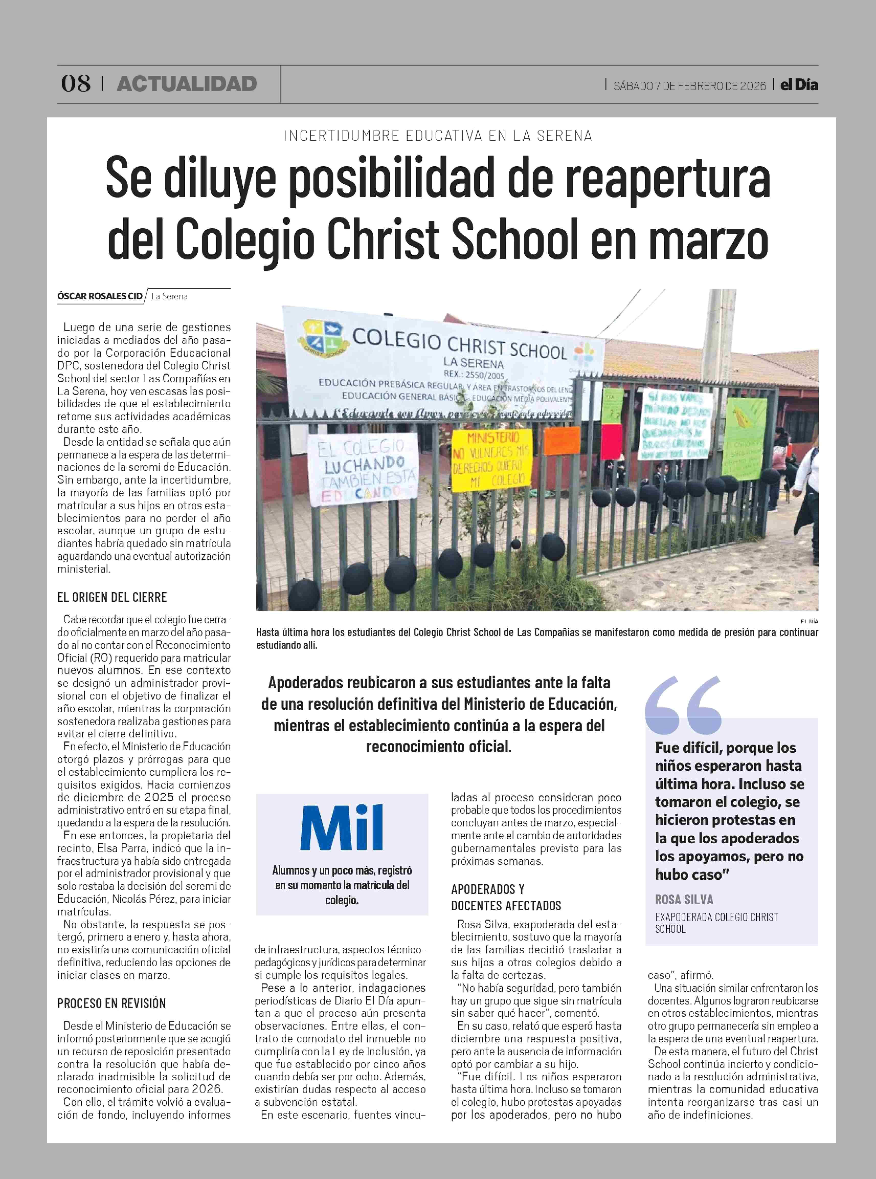 Se diluye posibilidad de reapertura del Colegio Christ School en marzo 07-02-2026 El Día |