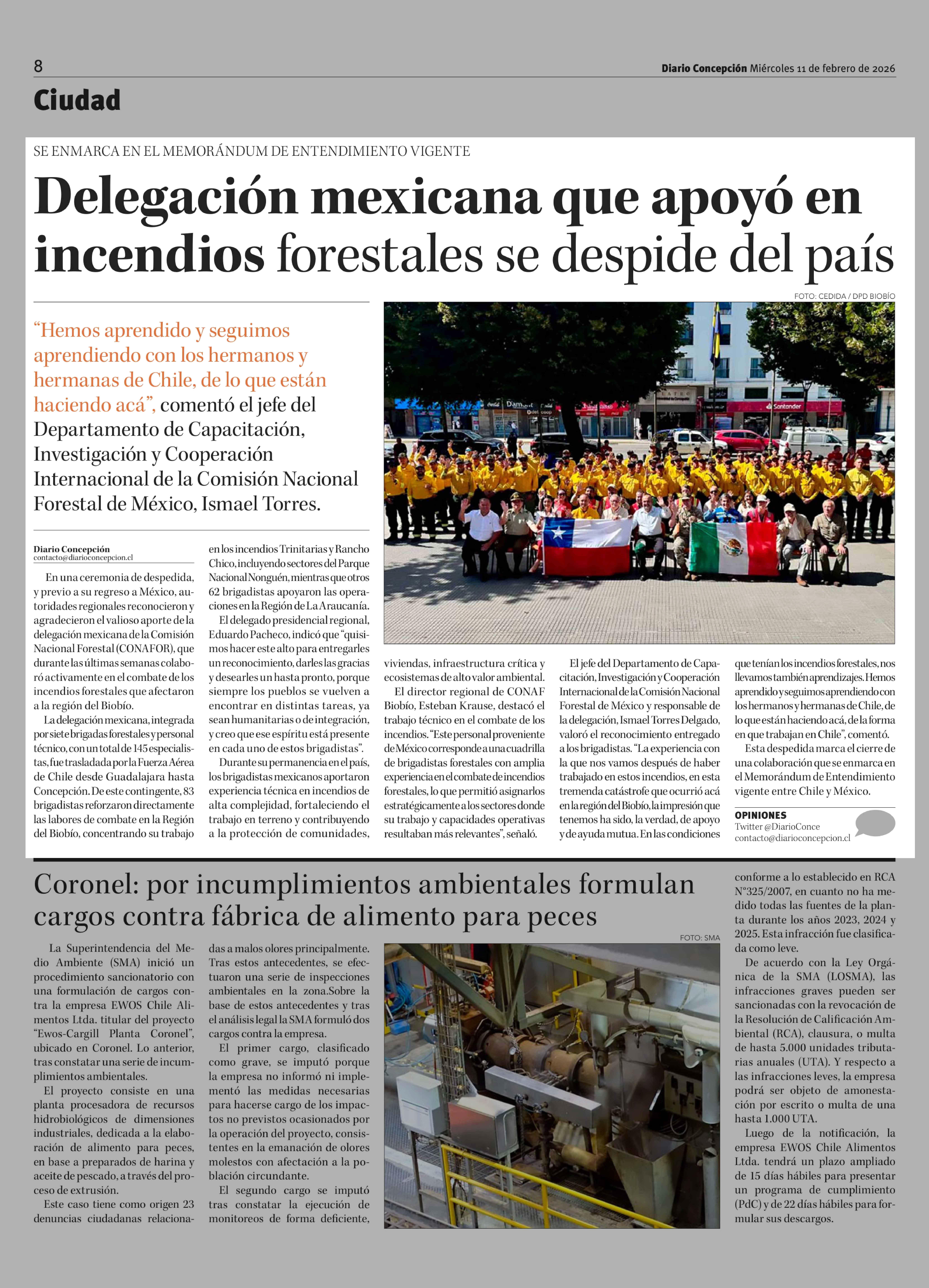 Delegación mexicana que apoyó en incendios forestales se despide del país 11-02-2026 Diario Concepción |