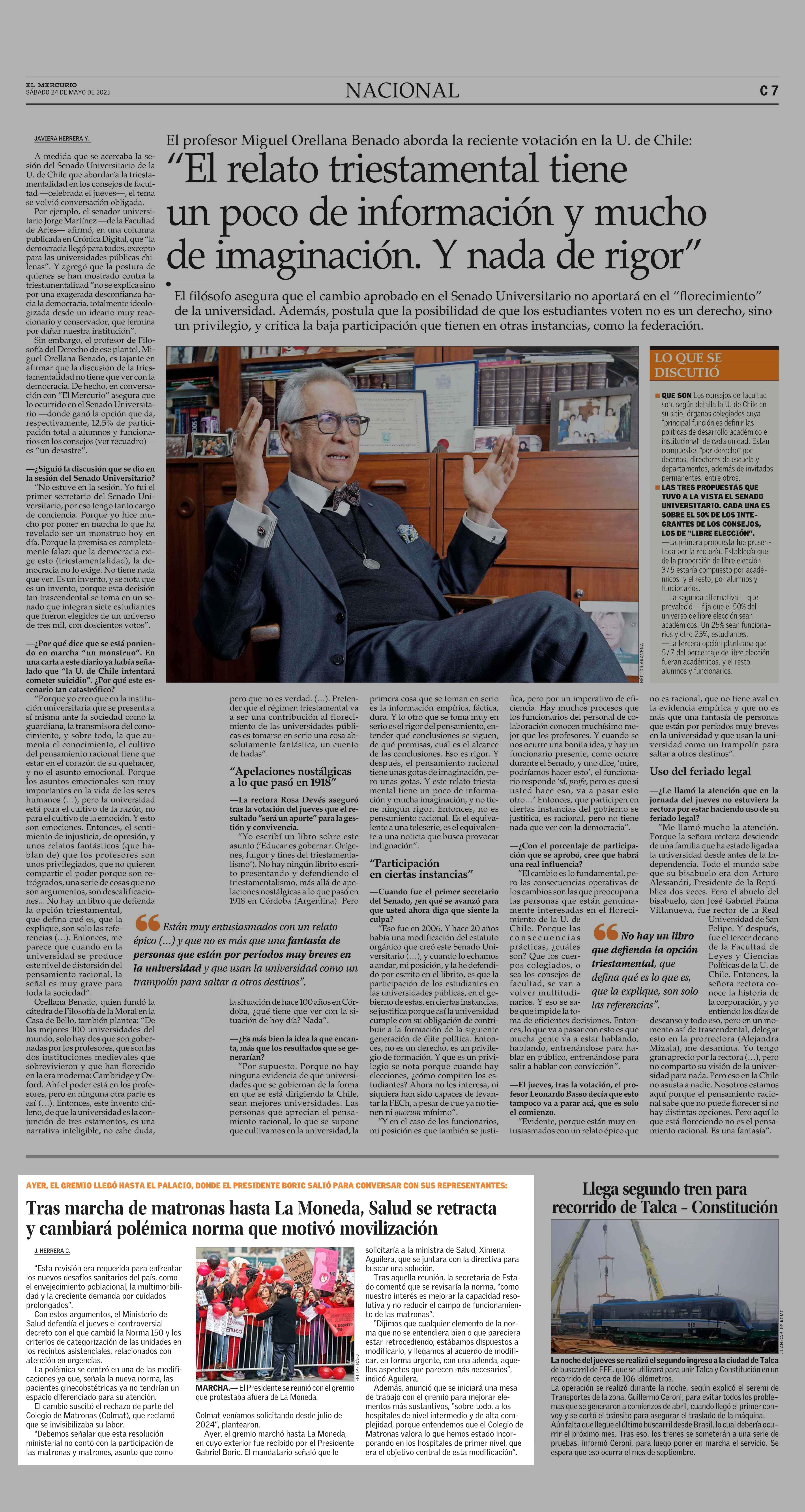 Tras marcha de matronas hasta La Moneda, Salud se retracta y cambiará polémica norma que motivó movilización 24-05-2025 El Mercurio |