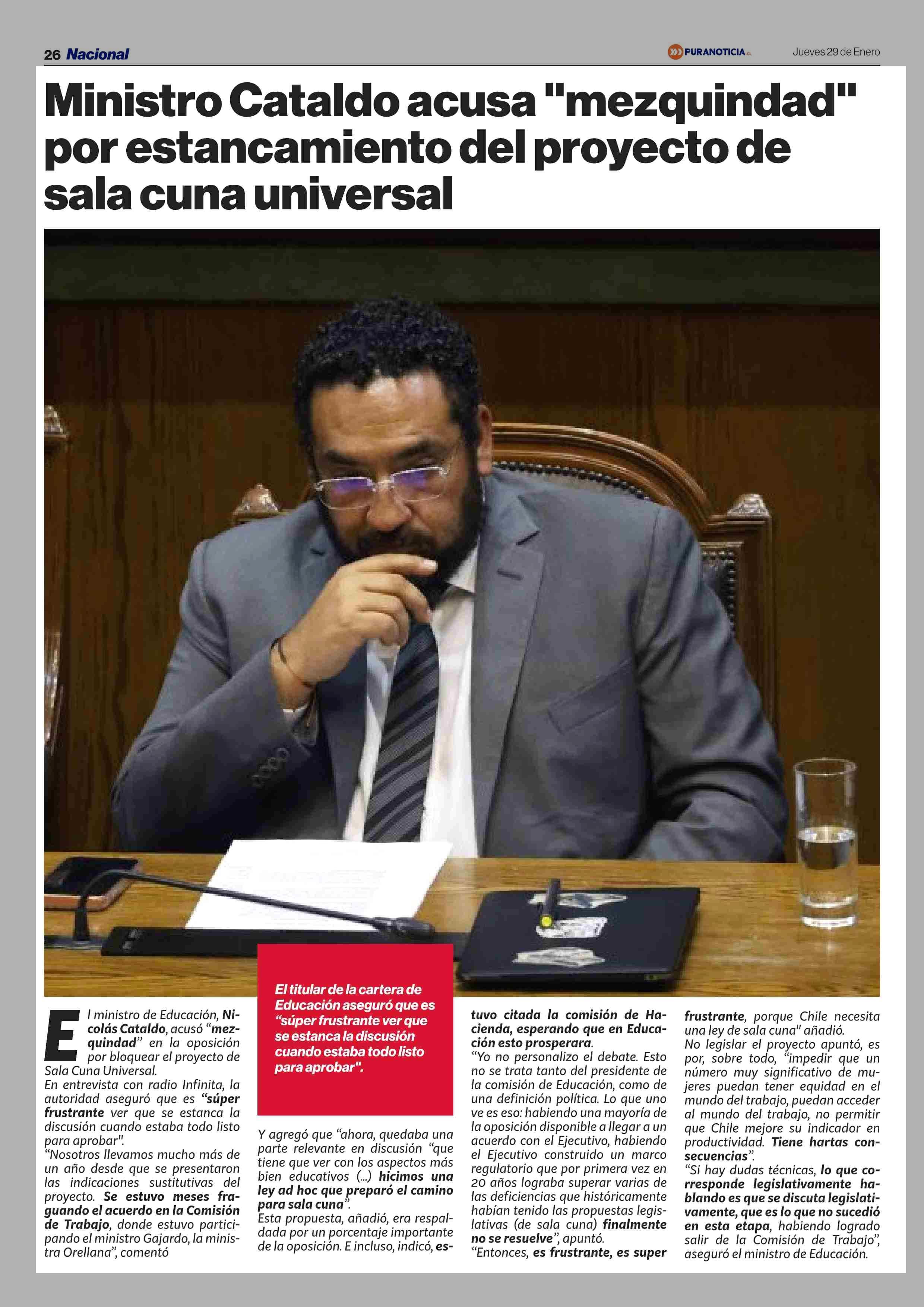 Título: Ministro Cataldo acusa “mezquindad” por estancamiento del proyecto de sala cuna universal