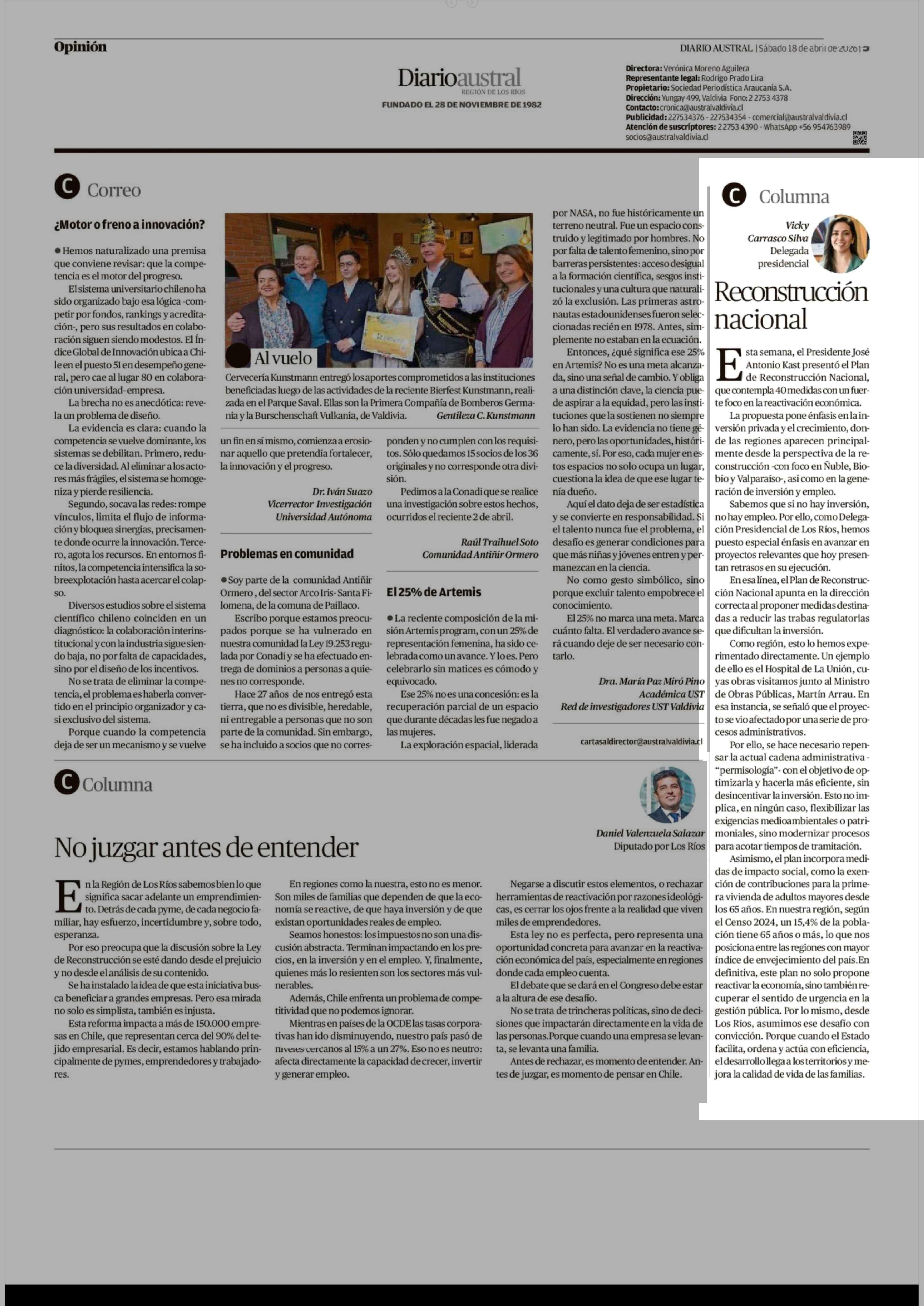 COLUMNAS DE OPINIÓN: Reconstrucción nacional 18-04-2026 Diario Austral Región de Los Ríos |