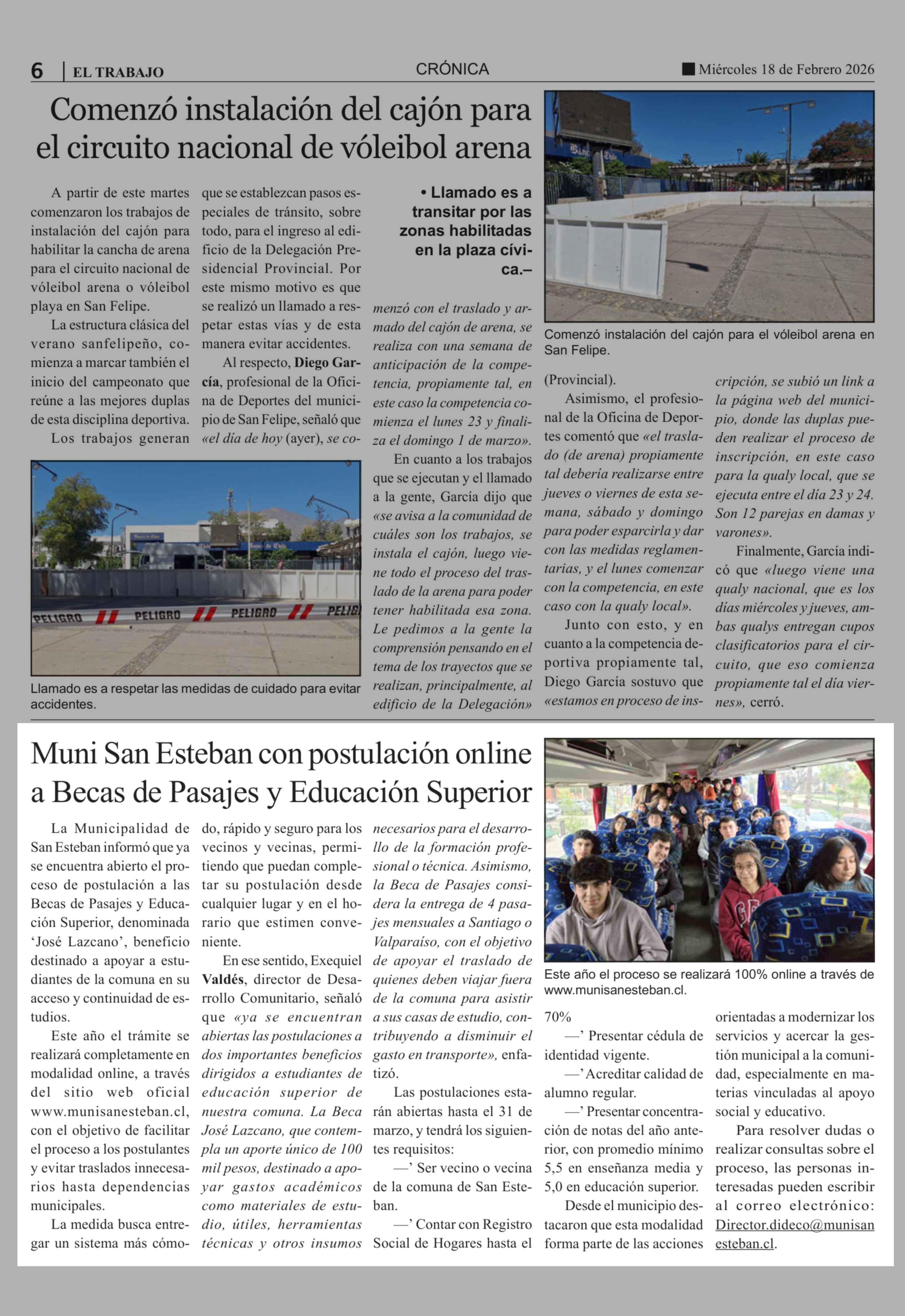 Muni San Esteban con postulación online a Becas de Pasajes y Educación Superior 18-02-2026 El Trabajo |