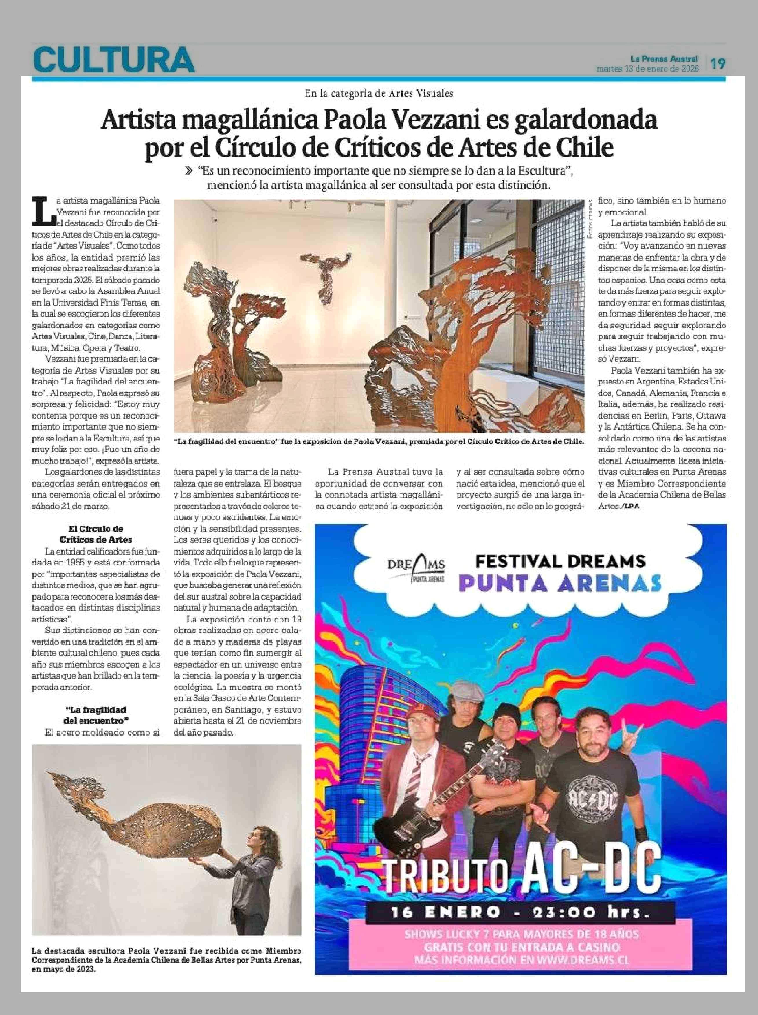 Título: Artista magallánica Paola Vezzani es galardonada por el Círculo de Críticos de Artes de Chile