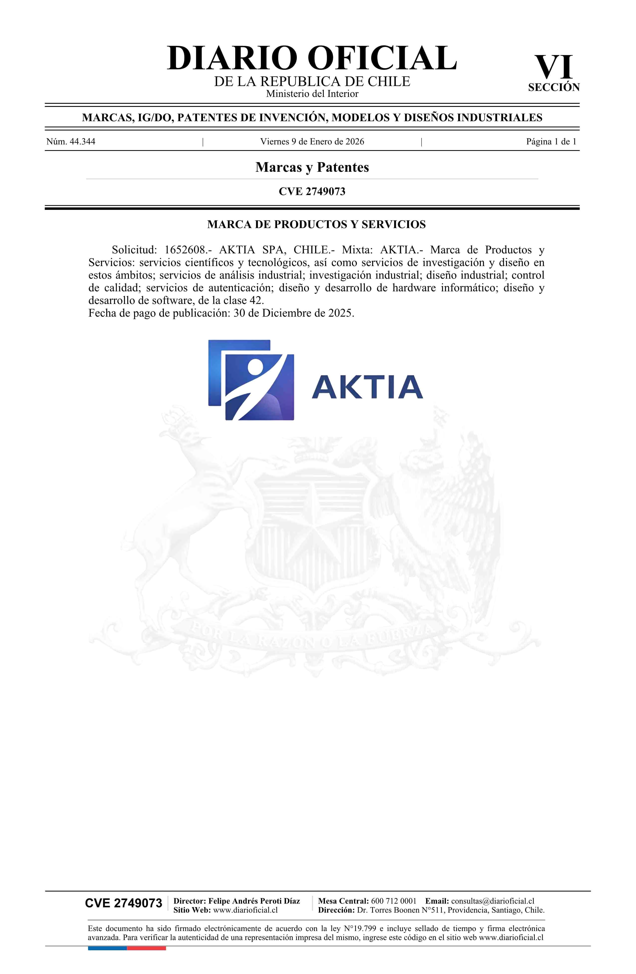Solicitud número 1652608.- AKTIA 09-01-2026 Diario Oficial Edición Electrónica |