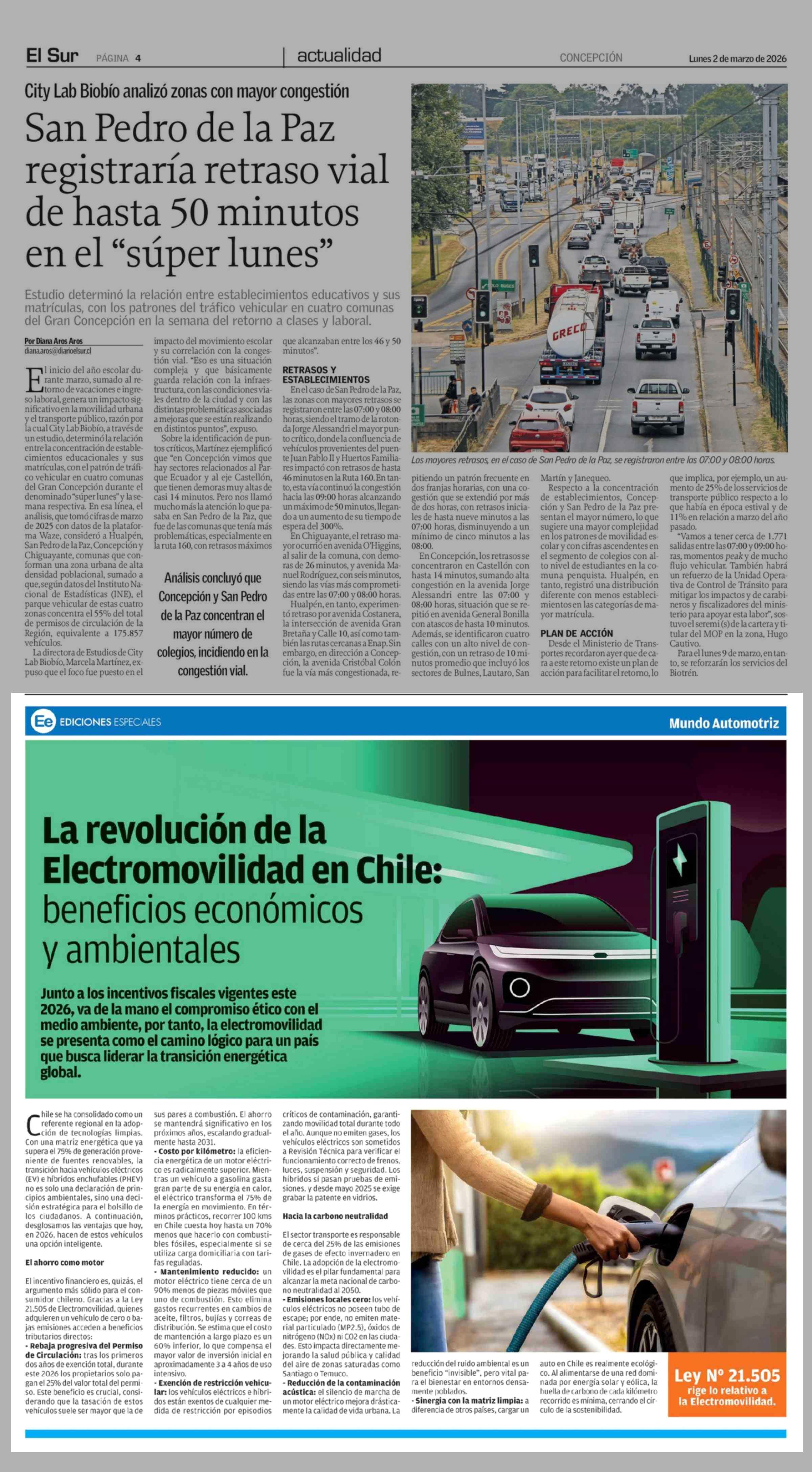La revolución de la Electromovilidad en Chile: beneficios económicos y ambientales 02-03-2026 El Sur |