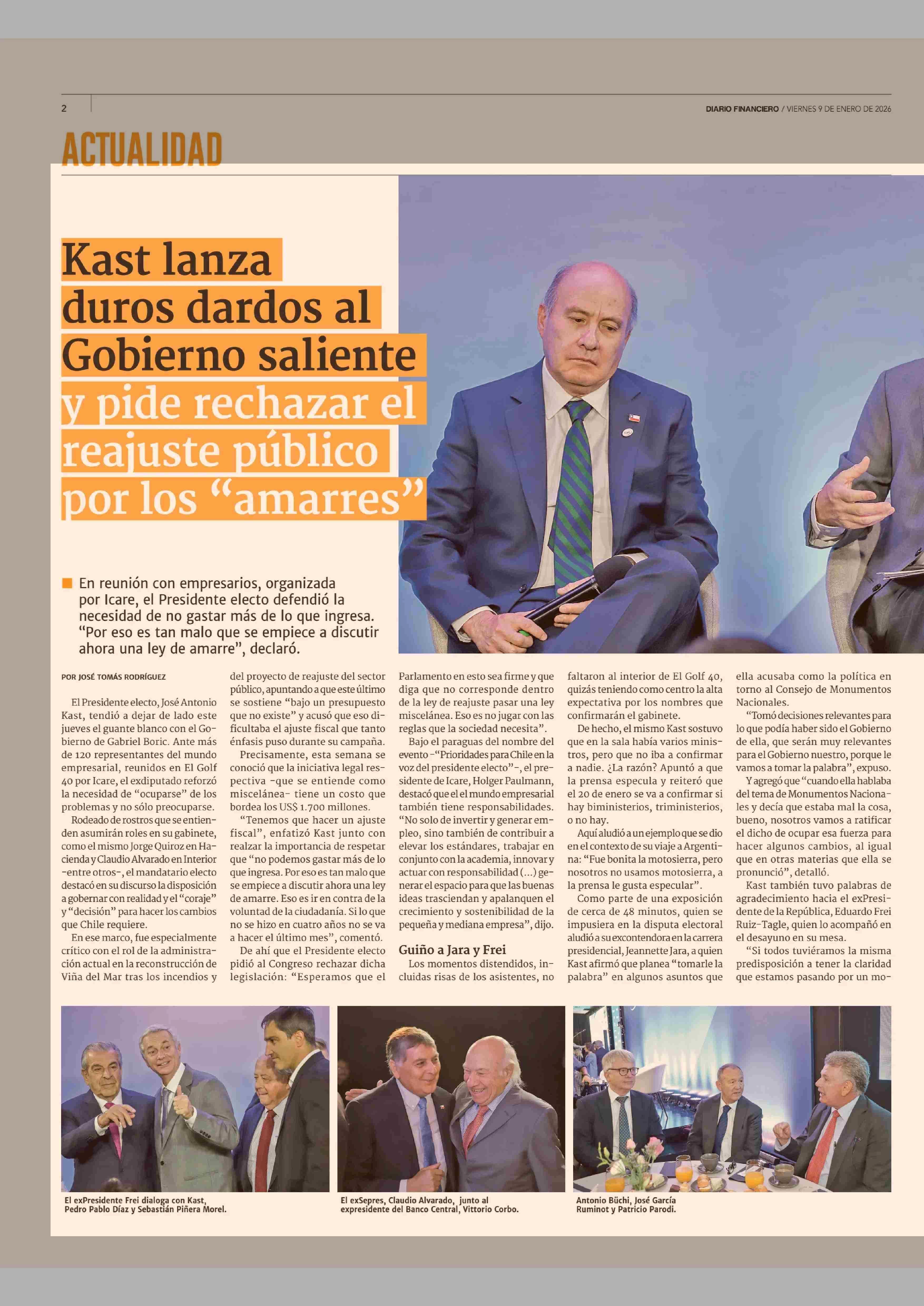 Kast lanza duros dardos al Gobierno saliente y pide rechazar el reajuste público por los "amarres 09-01-2026 Diario Financiero |