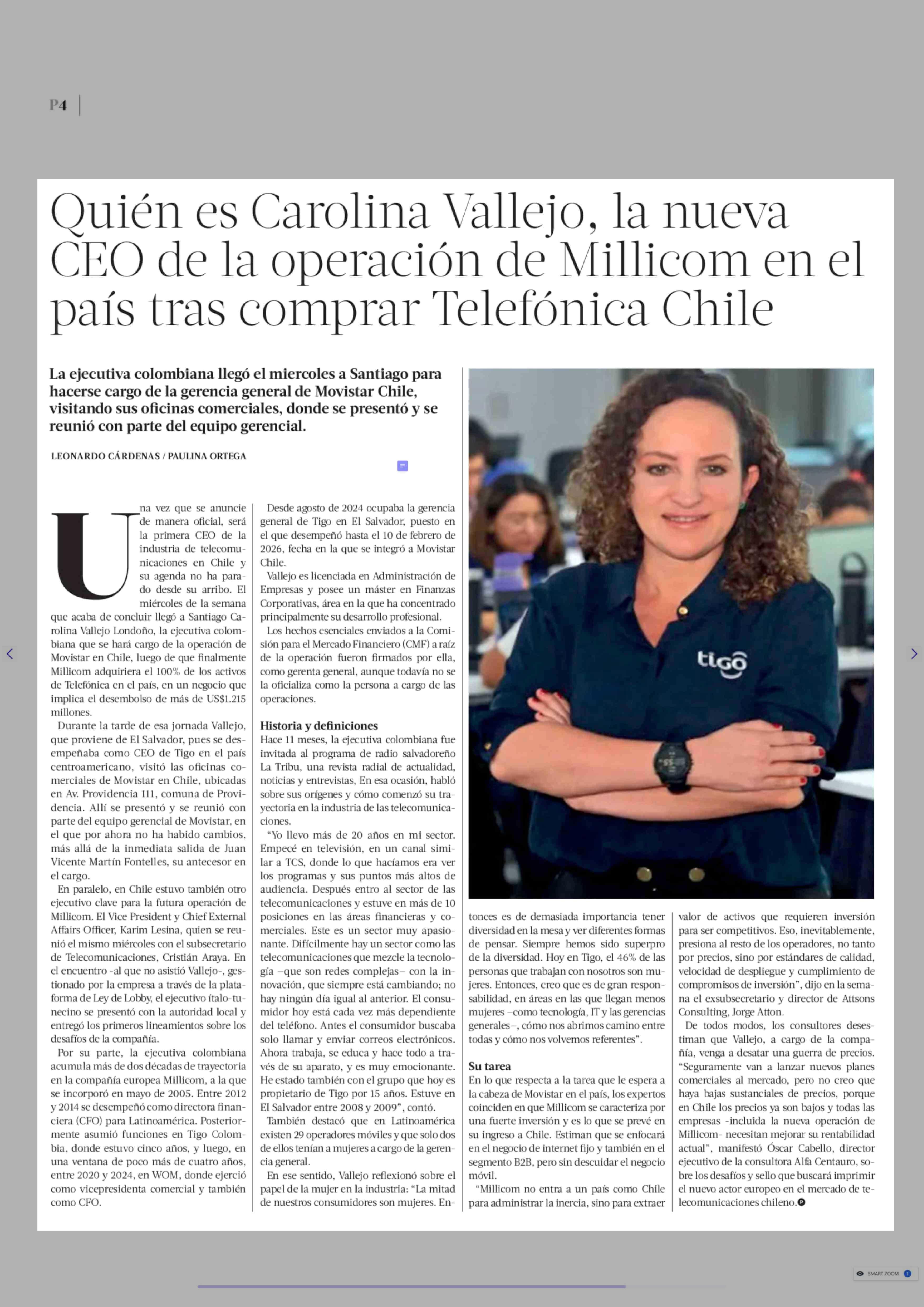 | Título: | Quién es Carolina Vallejo, la nueva CEO de la operación de Millicom en el país tras comprar Telefónica Chile |