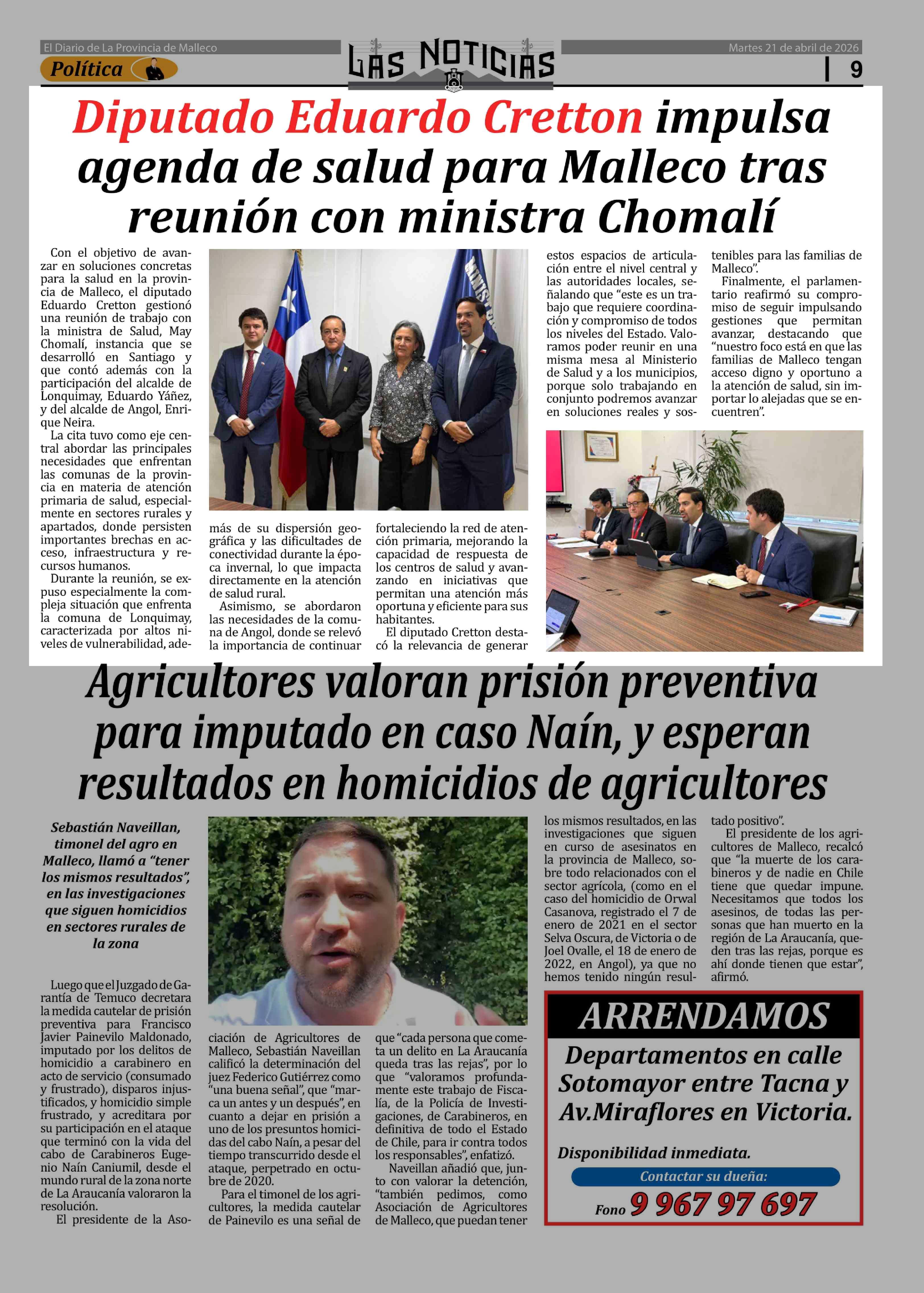Fecha: 21-04-2026 Sector: Noticia general Región: Región de la Araucanía