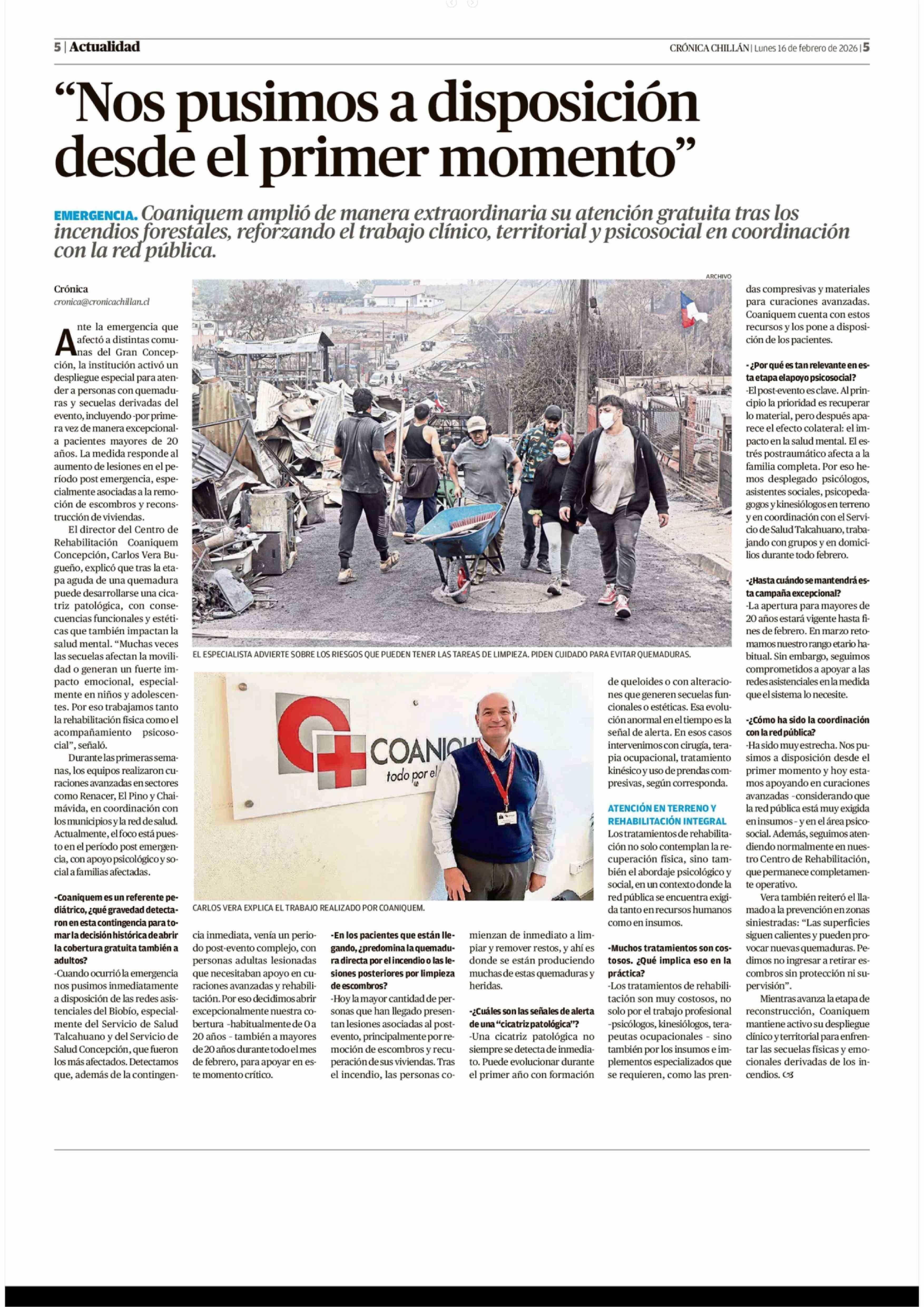 "Nos pusimos a disposición desde el primer momento" 16-02-2026 Crónica de Chillán |