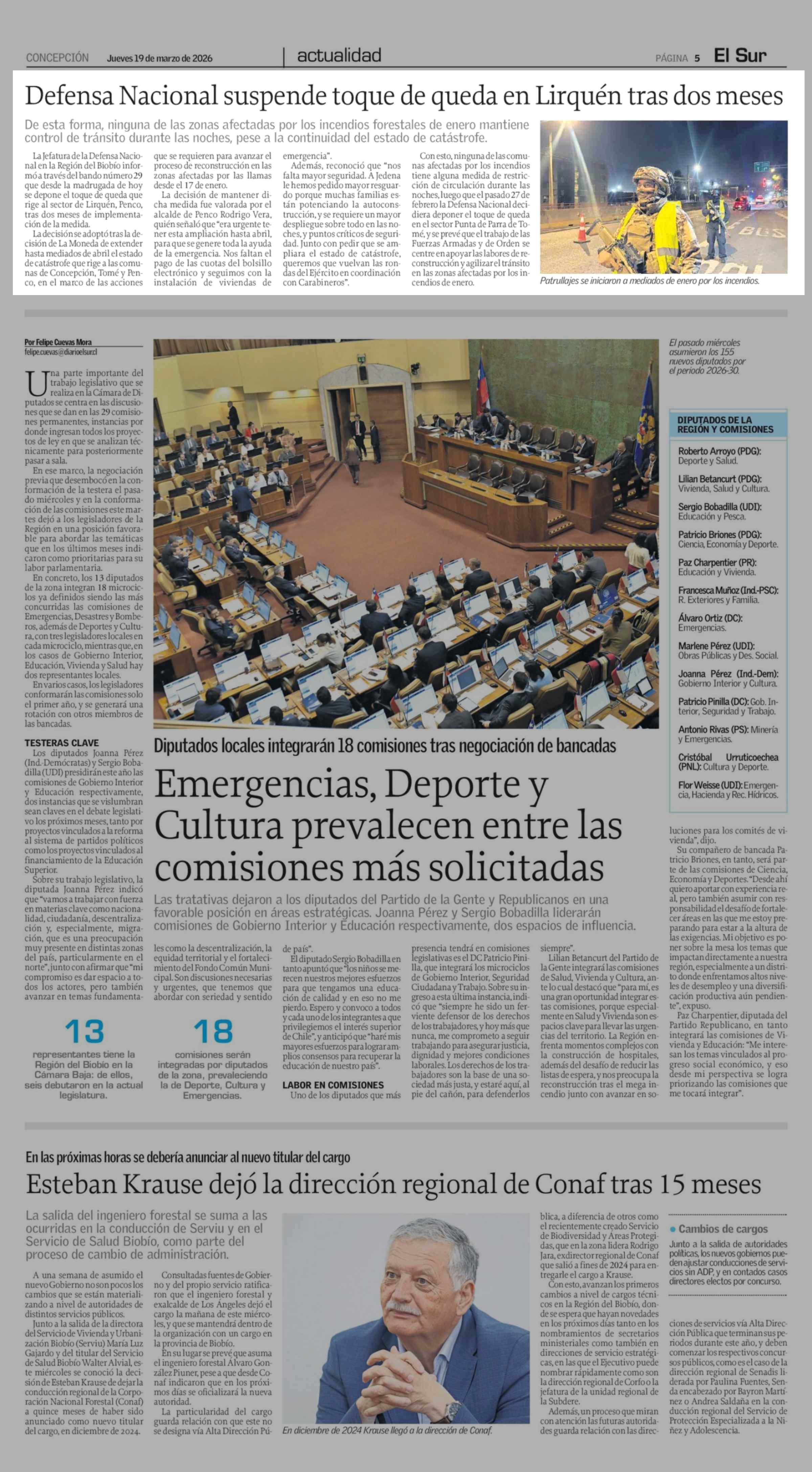 Defensa Nacional suspende toque de queda en Lirquén tras dos meses 19-03-2026 El Sur |
