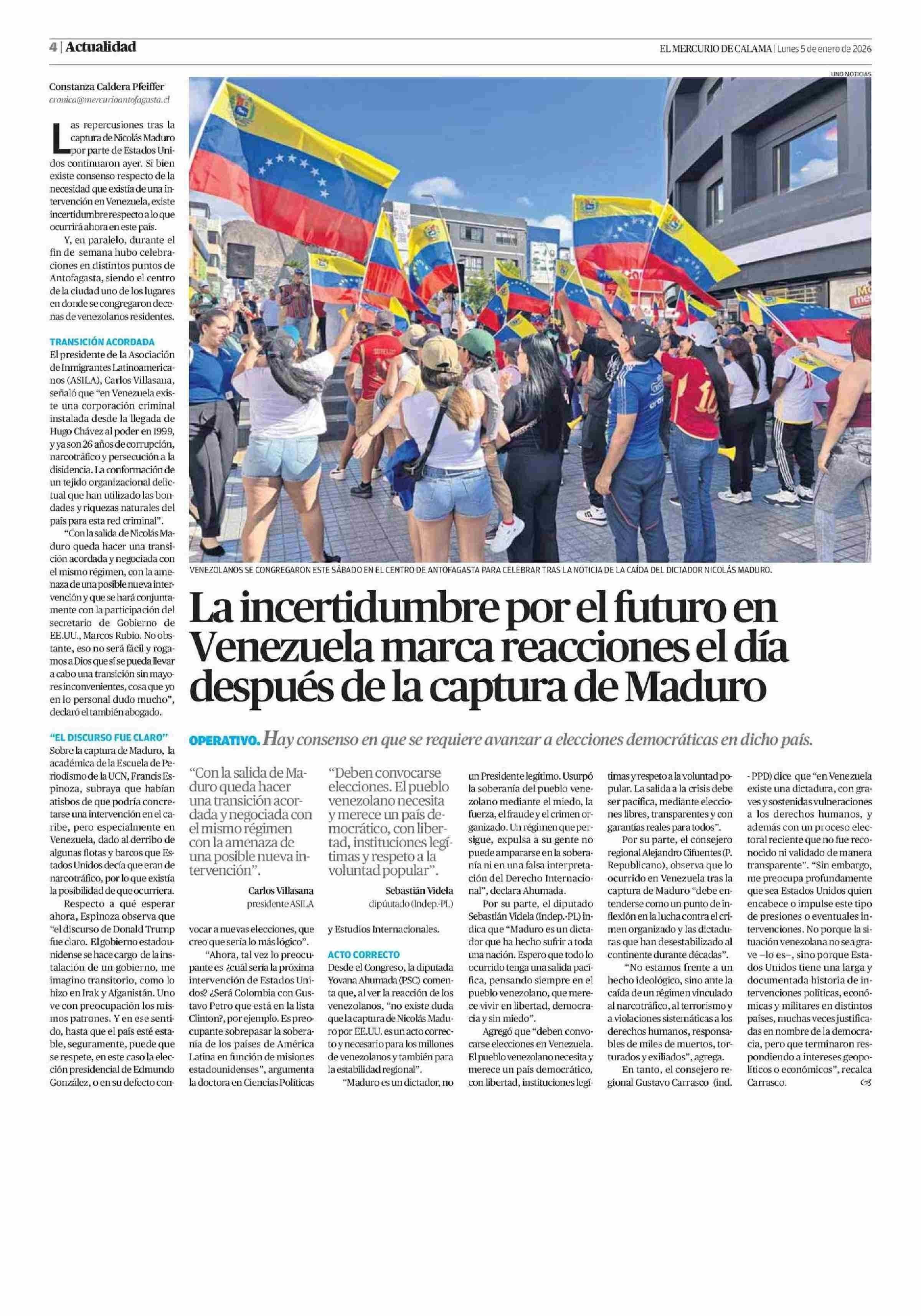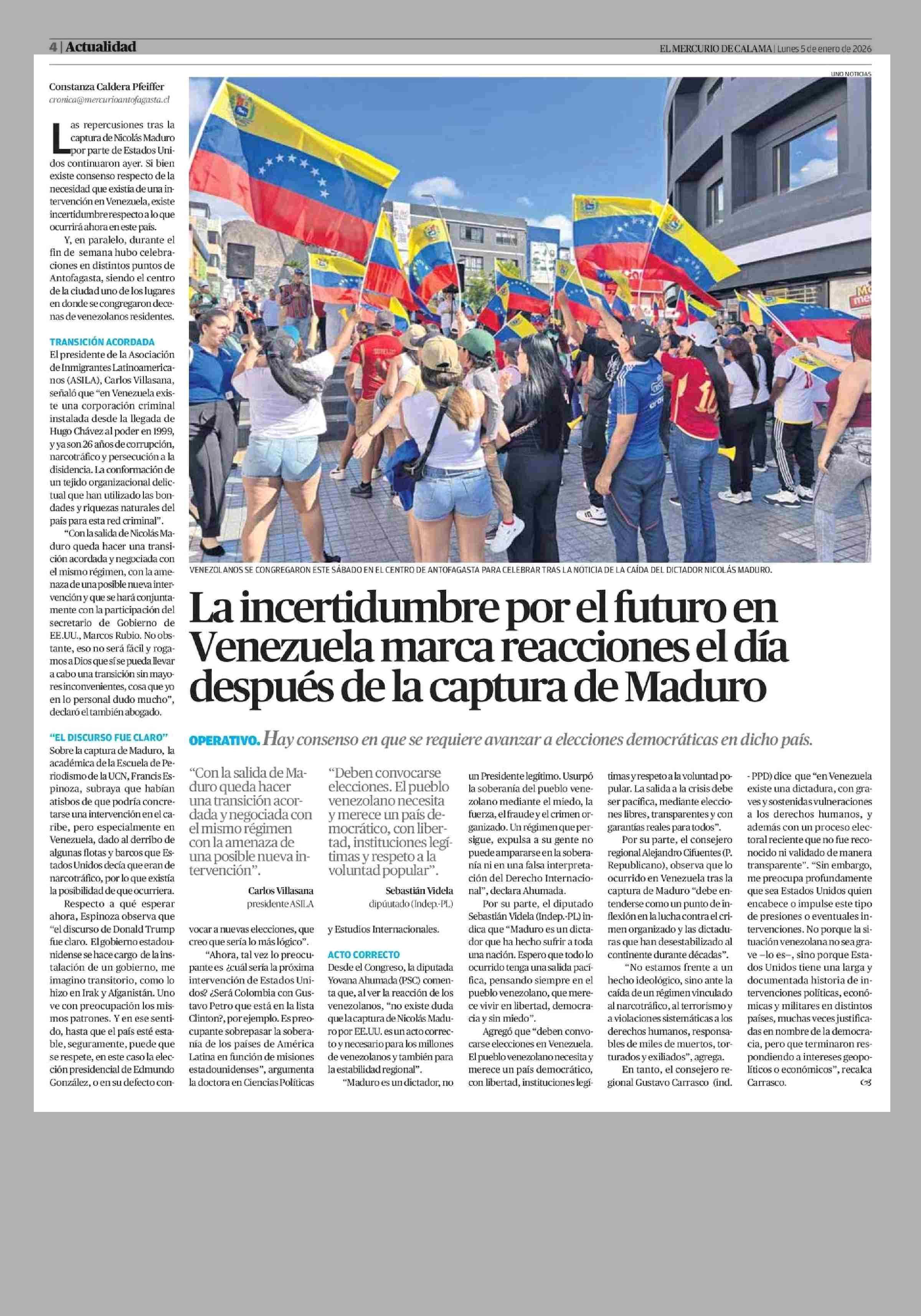 La incertidumbre por el futuro en Venezuela marca reacciones el día después de la captura de Maduro 05-01-2026 El Mercurio de Calama |