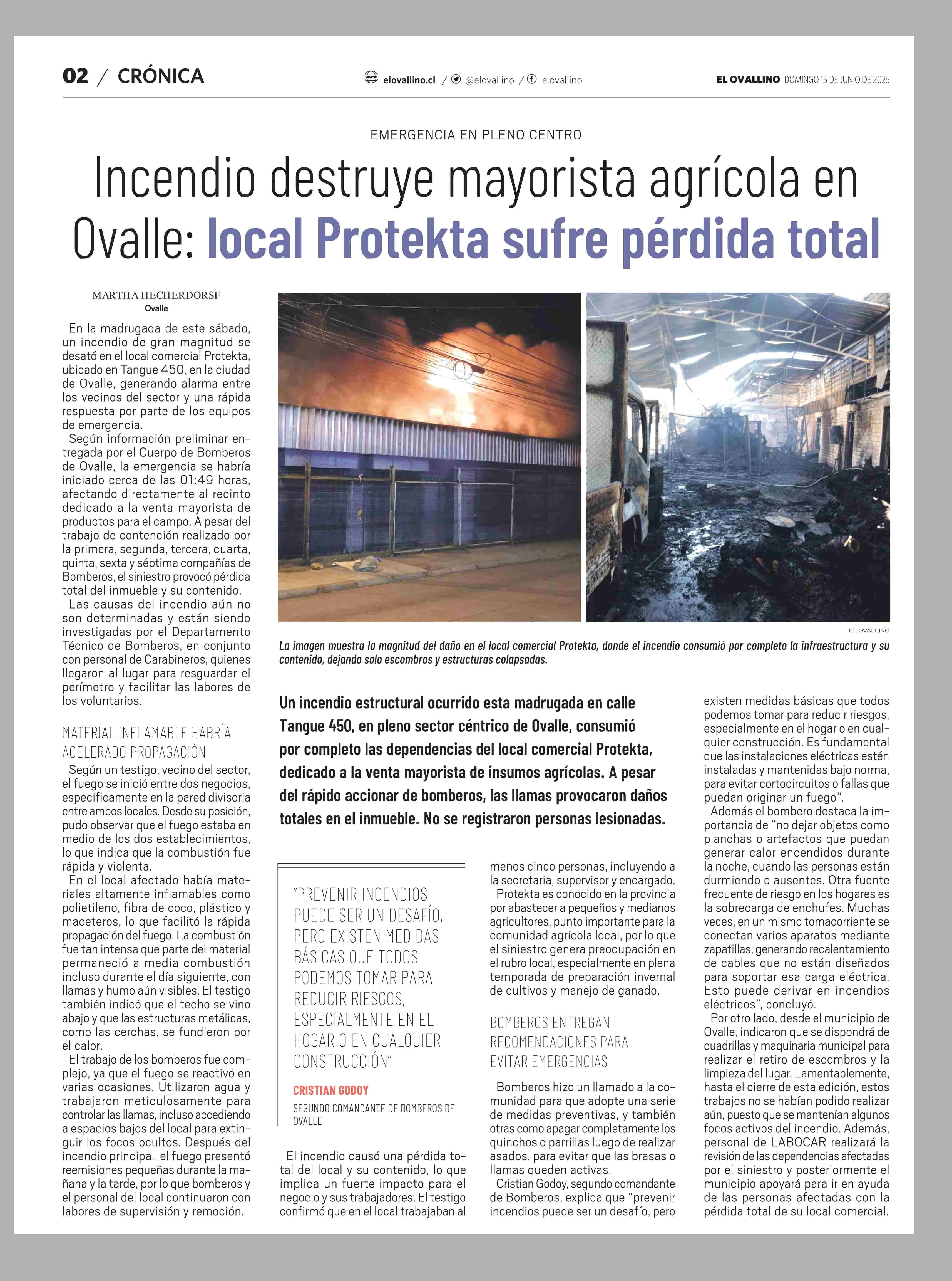 Incendio destruye mayorista agrícola en Ovalle: local Protekta sufre pérdida total 15-06-2025 El Ovallino |