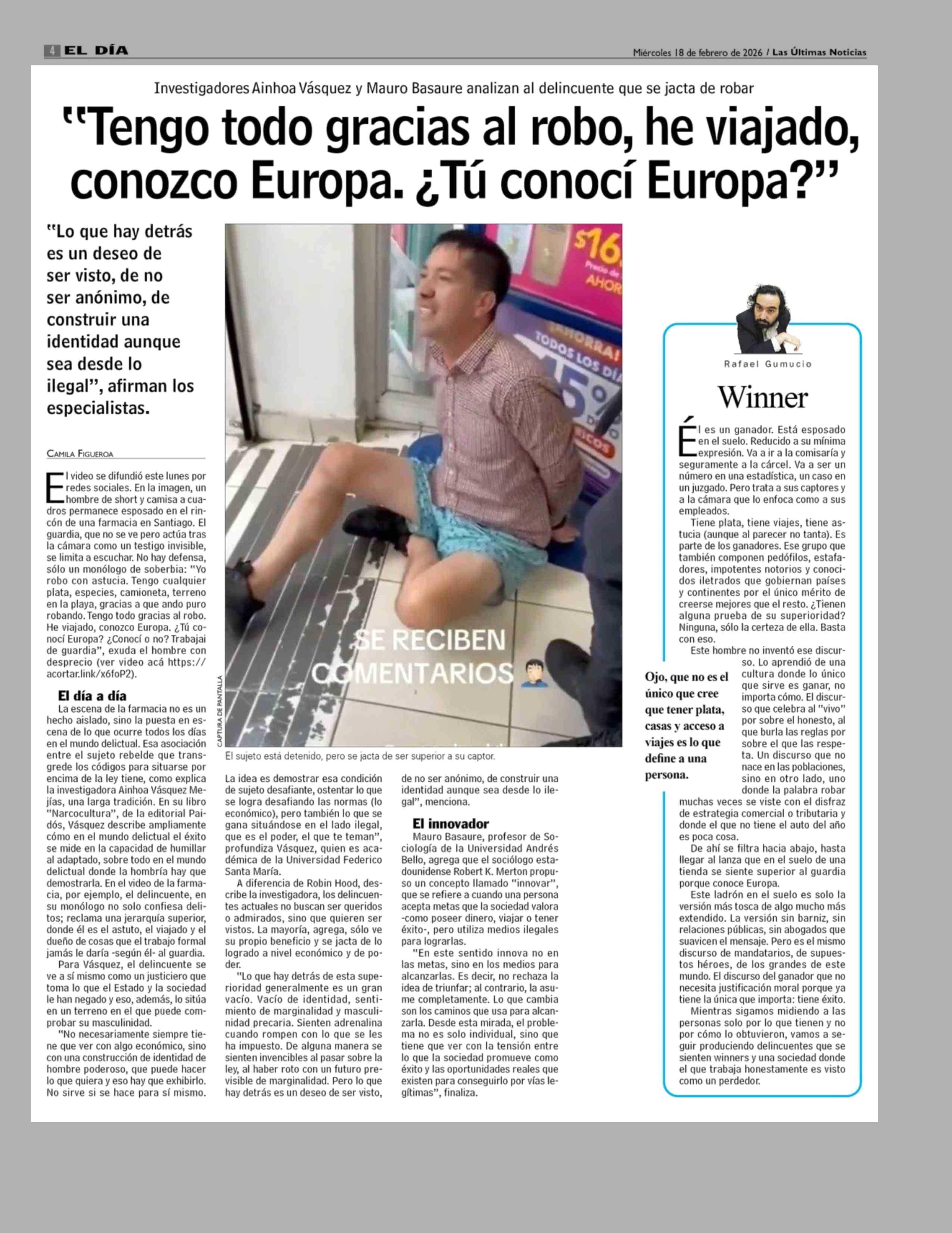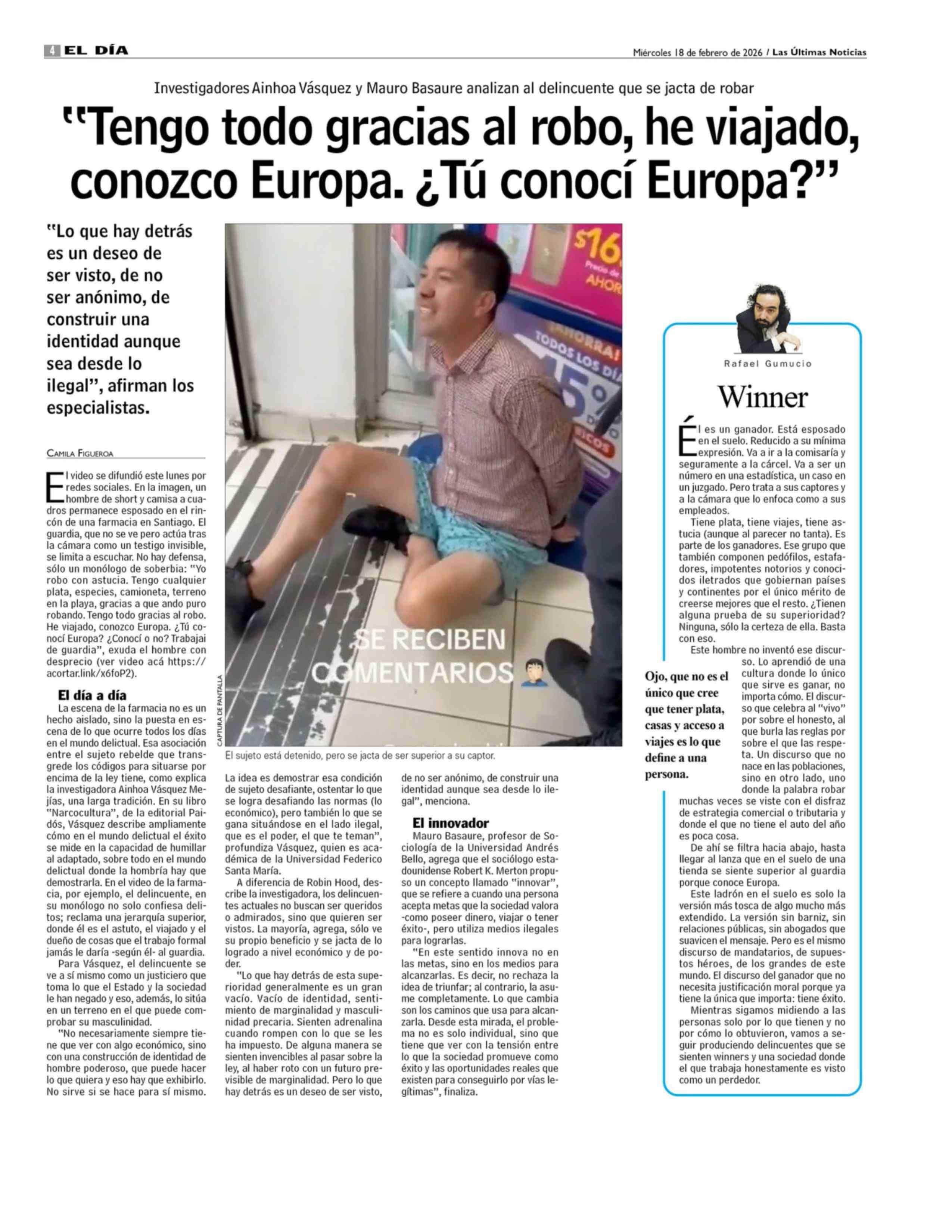 "Tengo todo gracias al robo, he viajado, conozco Europa. ¿ Tú conocí Europa?" 18-02-2026 Las Últimas Noticias |