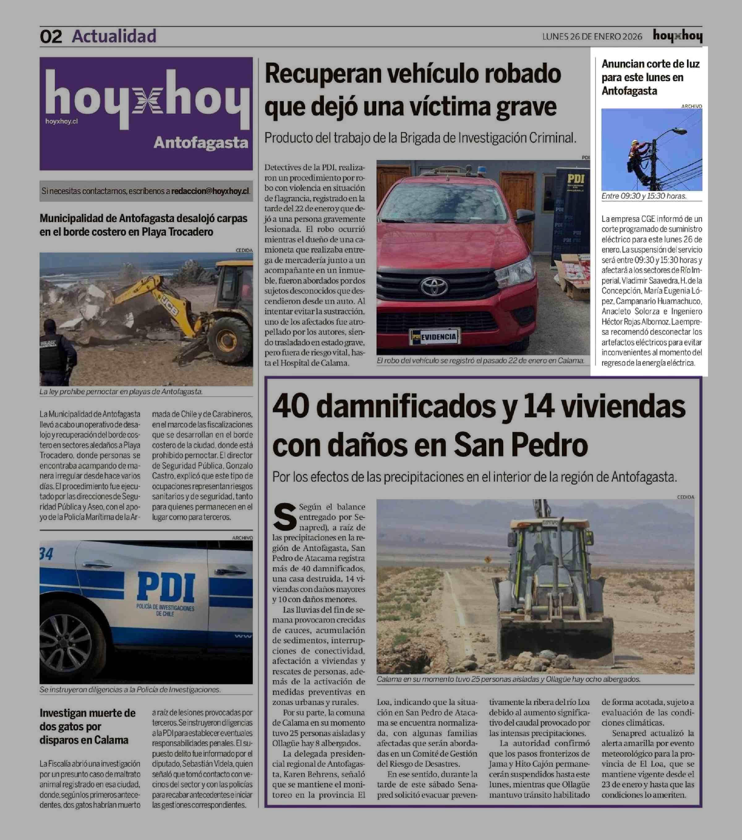 | Fecha: | 26-01-2026 | Sector: | Noticia general | Región: | Región de Antofagasta |