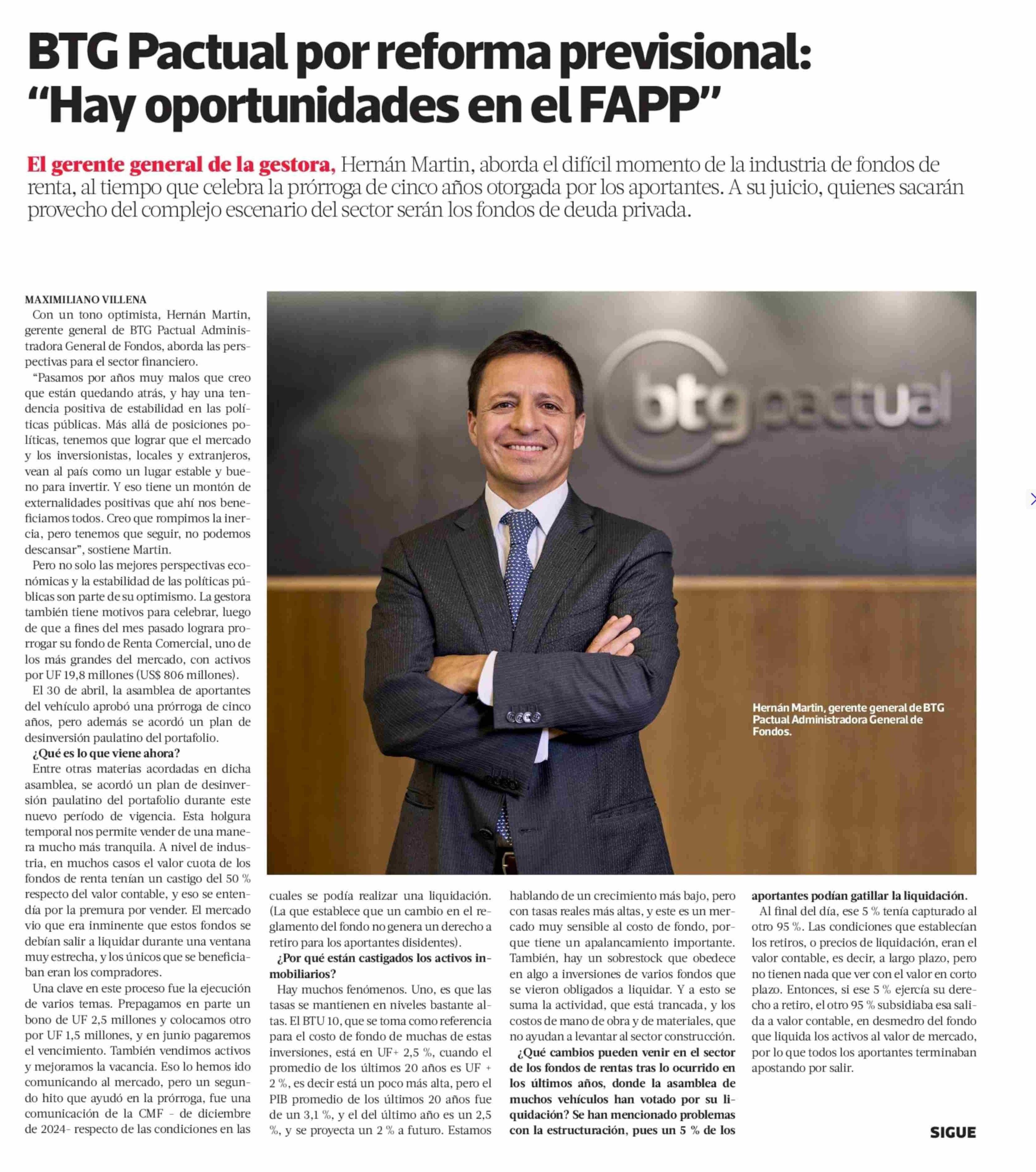 Título: BTG Pactual por reforma previsional: “Hay oportunidades en el FAPP”