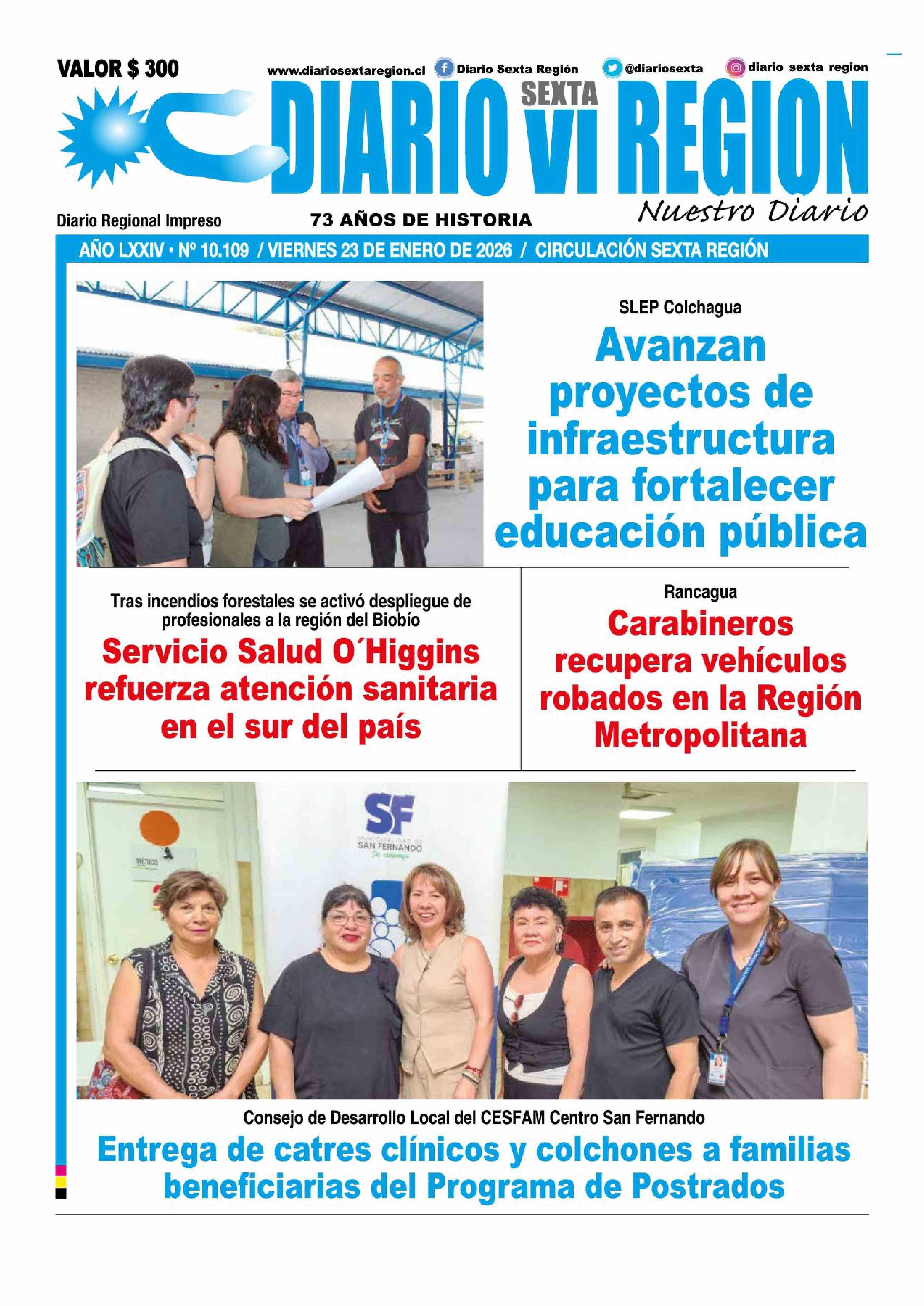 | Fecha: | 23-01-2026 | Sector: | Portada | Región: | Región del Libertador General Bernardo O'Higgins |