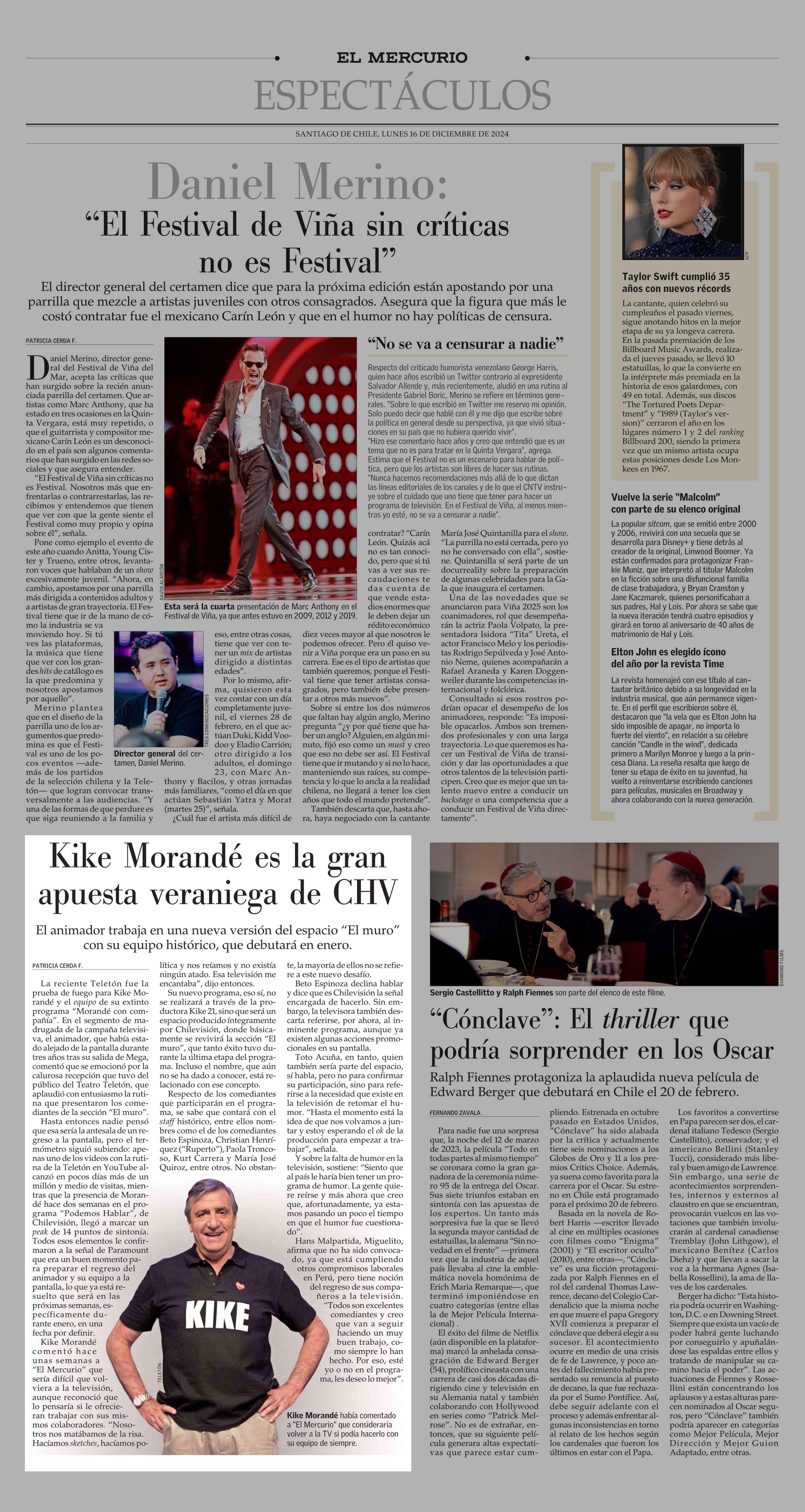 Kike Morandé es la gran apuesta veraniega de CHV 16-12-2024 El Mercurio |
