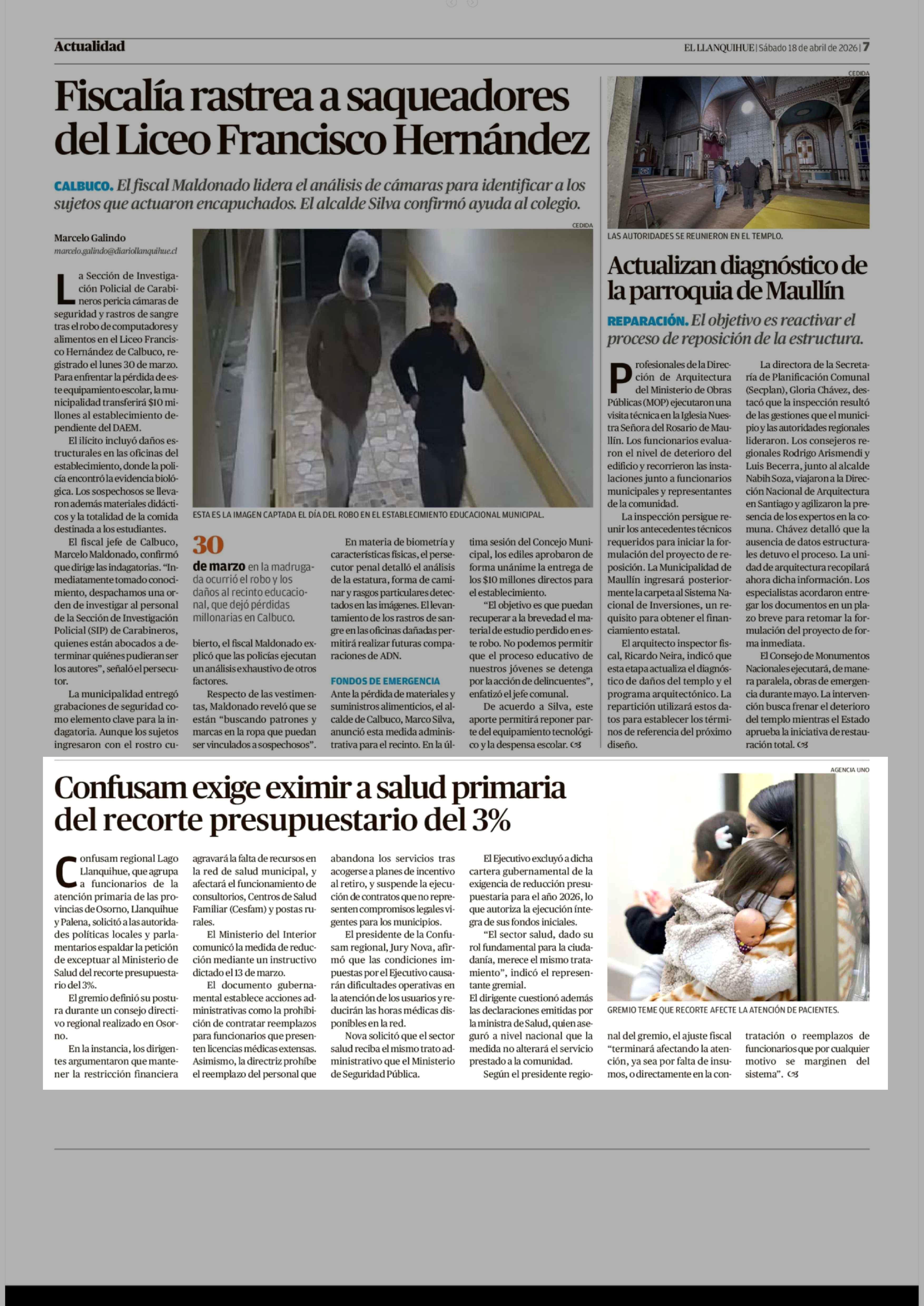 Confusam exige eximir a salud primaria del recorte presupuestario del 3% 18-04-2026 El Llanquihue |
