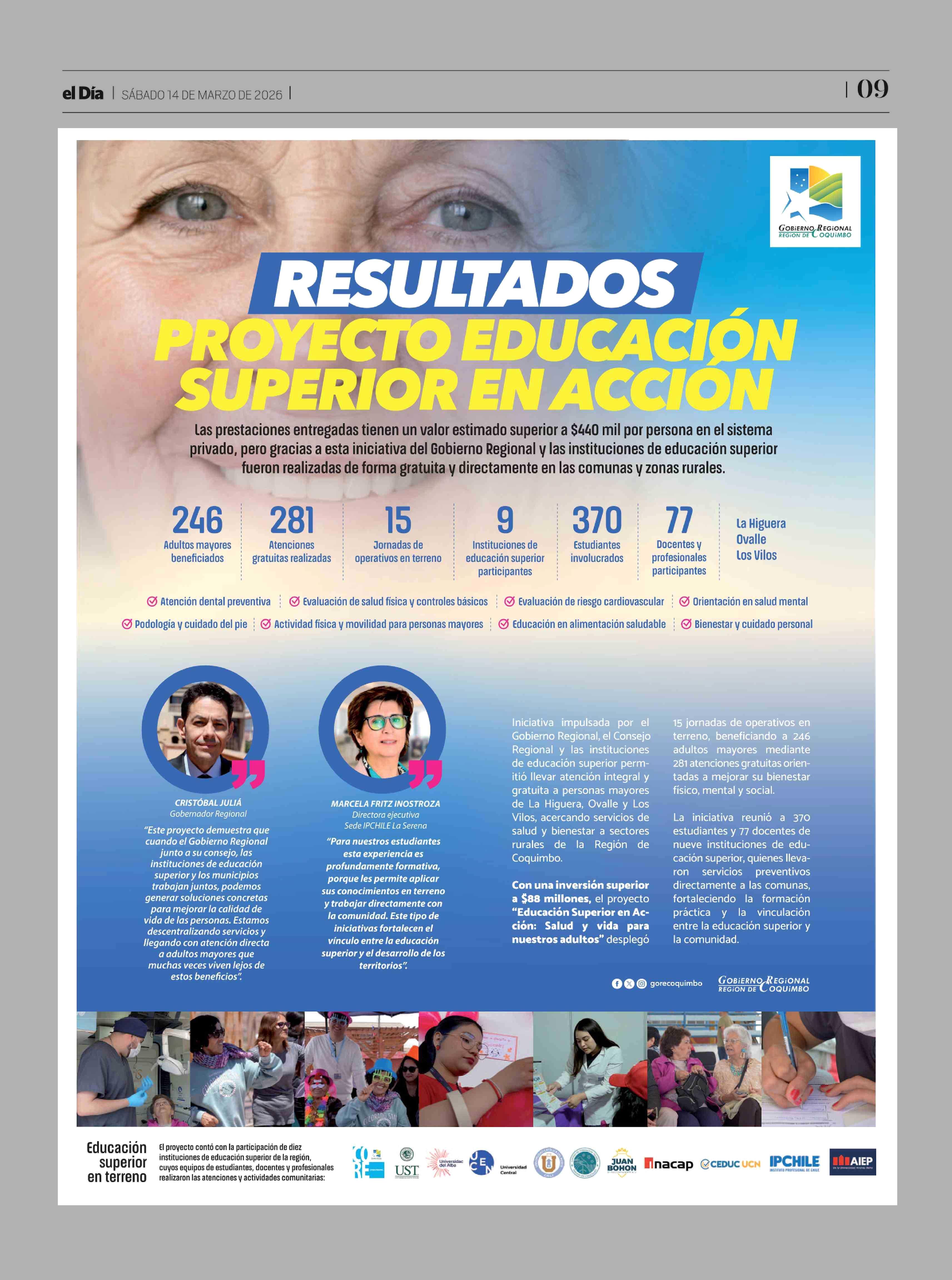 INSERTO: GOBIERNO REGIONAL REGION DE COQUIMBO, RESULTADOS PROYECTO EDUCACIÓN SUPERIOR EN ACCION