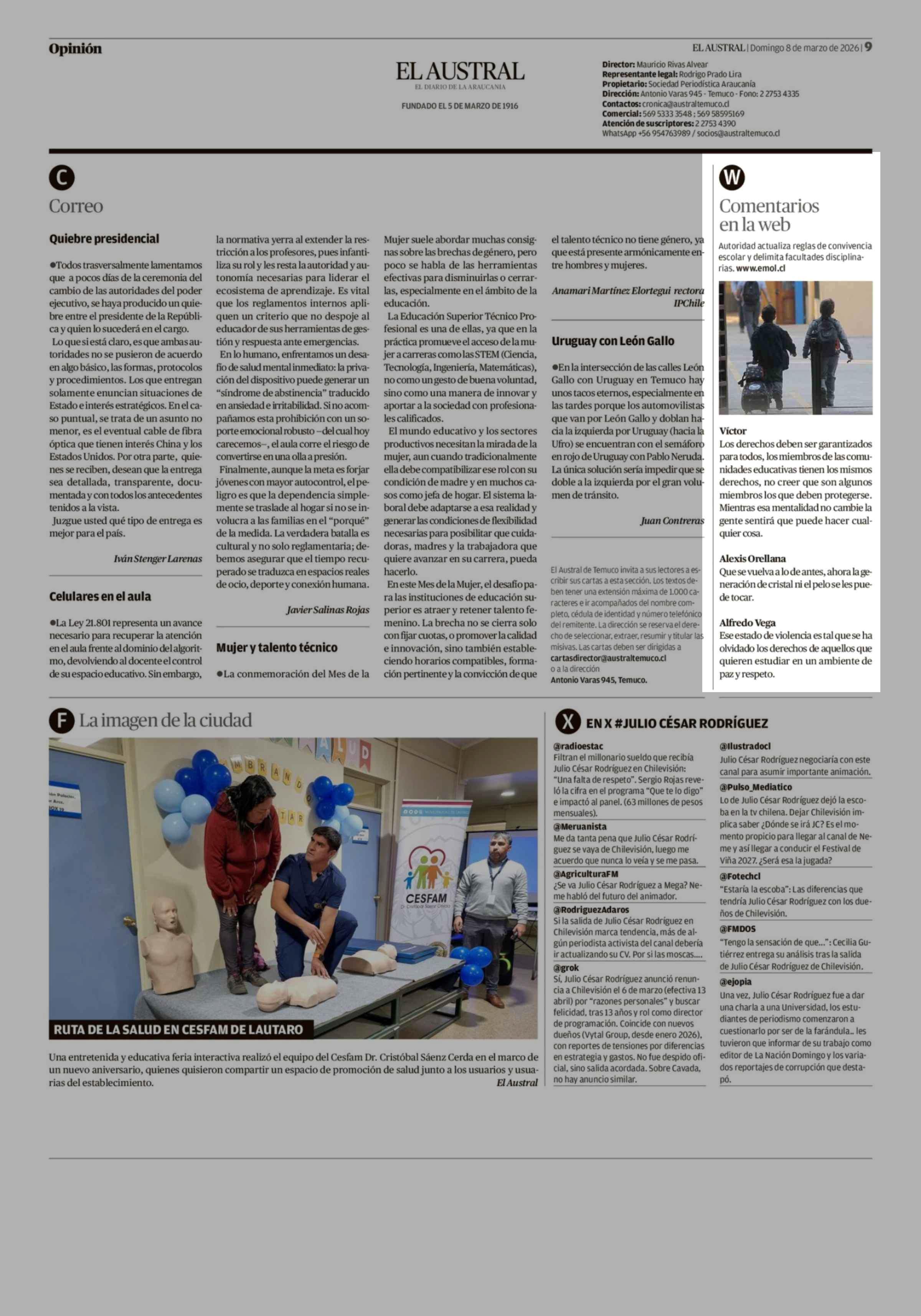 W Comentarios en la web 08-03-2026 El Austral de la Araucanía |