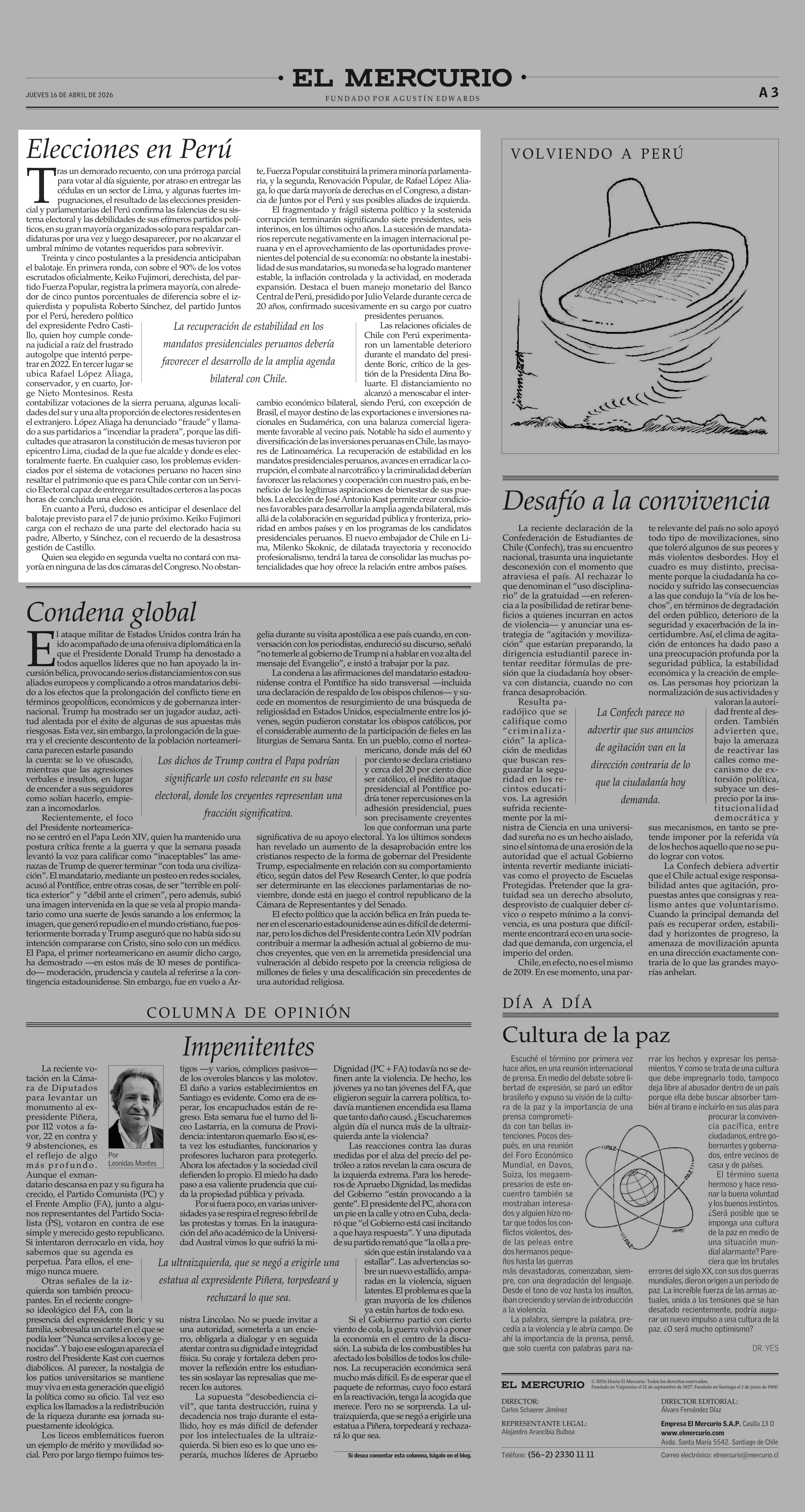 Editorial: Elecciones en Perú 16-04-2026 El Mercurio |