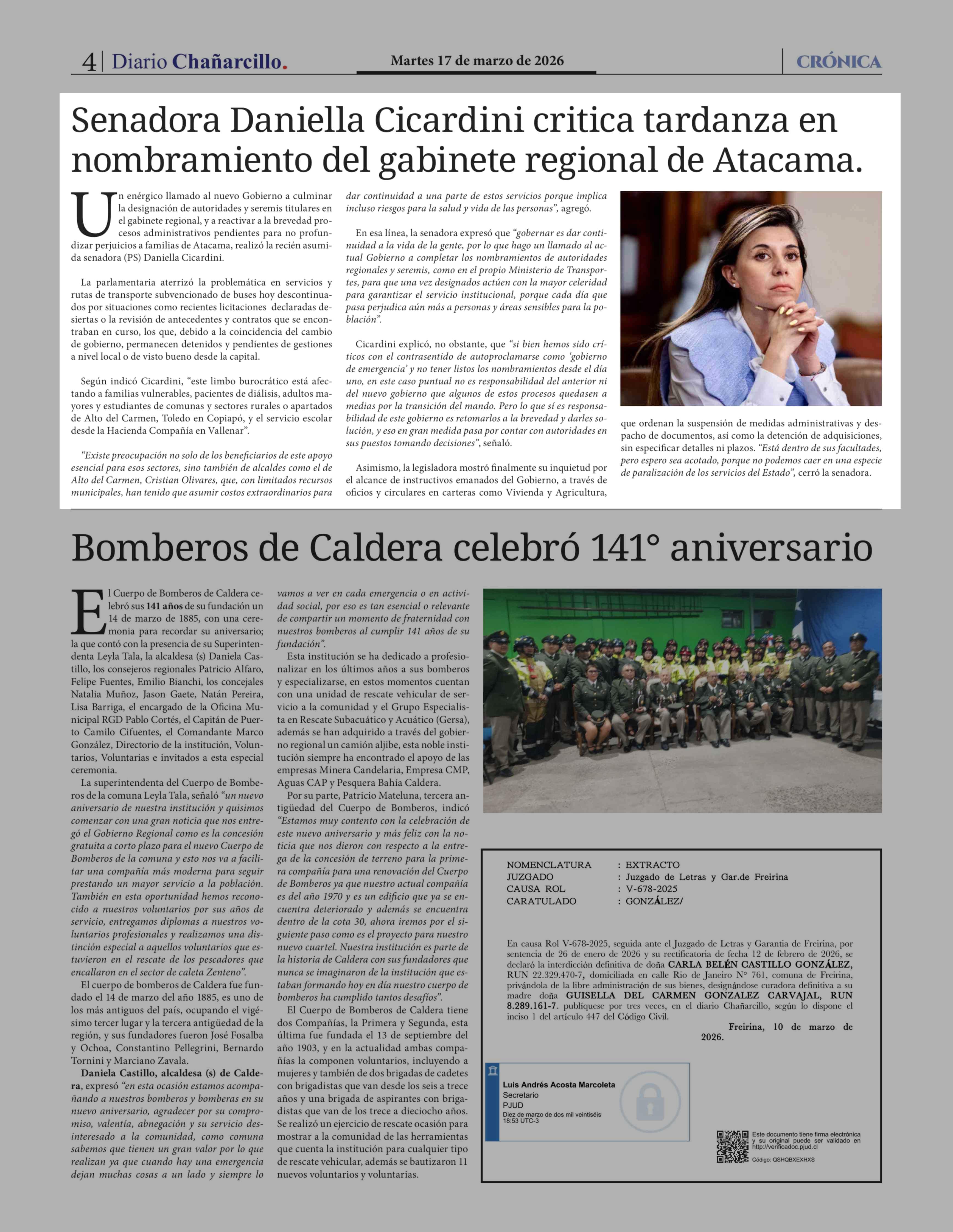 | Fecha: | 17-03-2026 | Sector: | Noticia general | Región: | Región de Atacama |