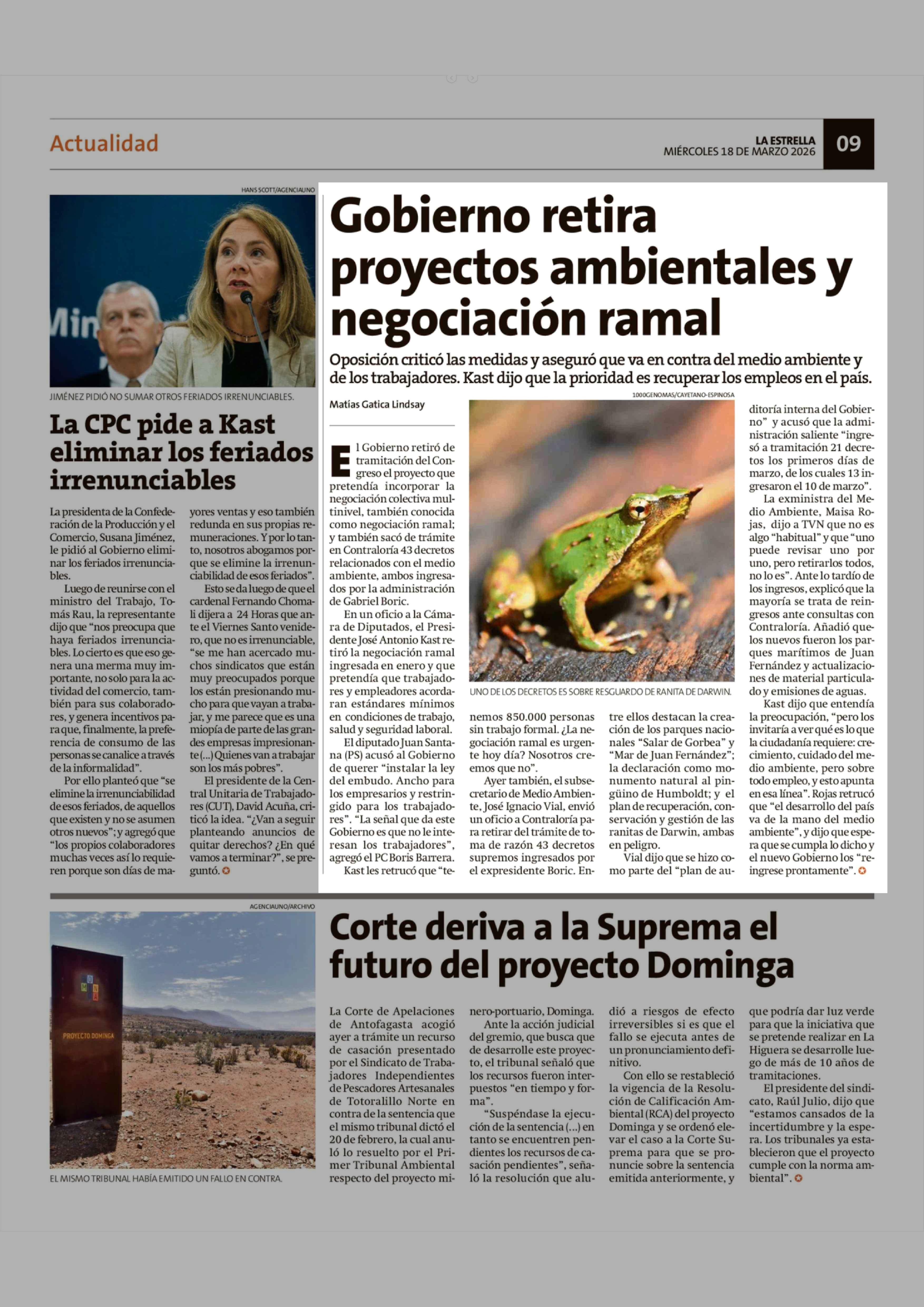 Gobierno retira proyectos ambientales y negociación ramal 18-03-2026 La Estrella de Chiloé |