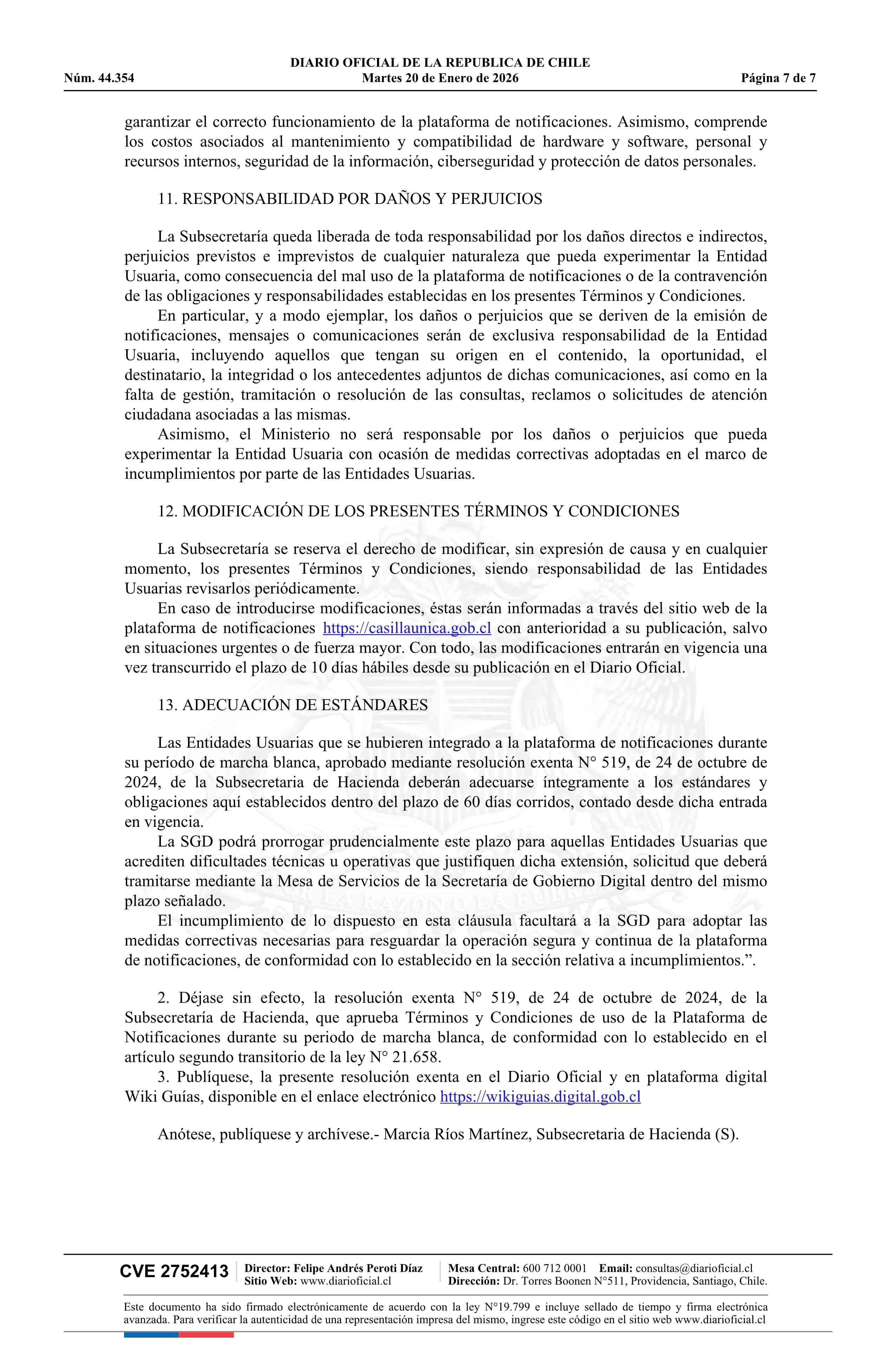 | Título: | Resolución exenta número 969, de 2025.- Aprueba términos y condiciones de uso de la plataforma Casilla Única |