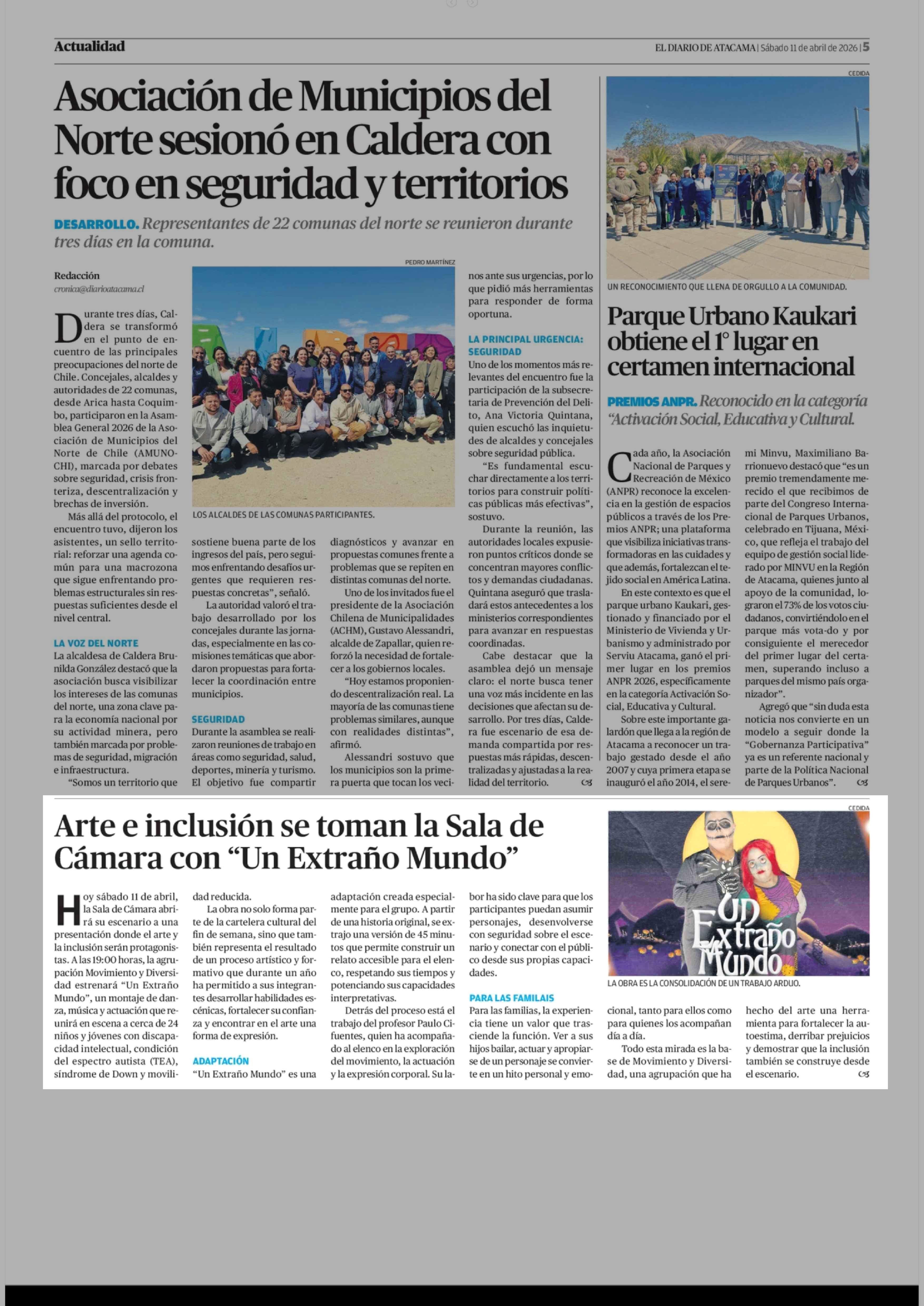 Arte e inclusión se toman la Sala de Cámara con "Un Extraño Mundo" 11-04-2026 El Diario de Atacama |