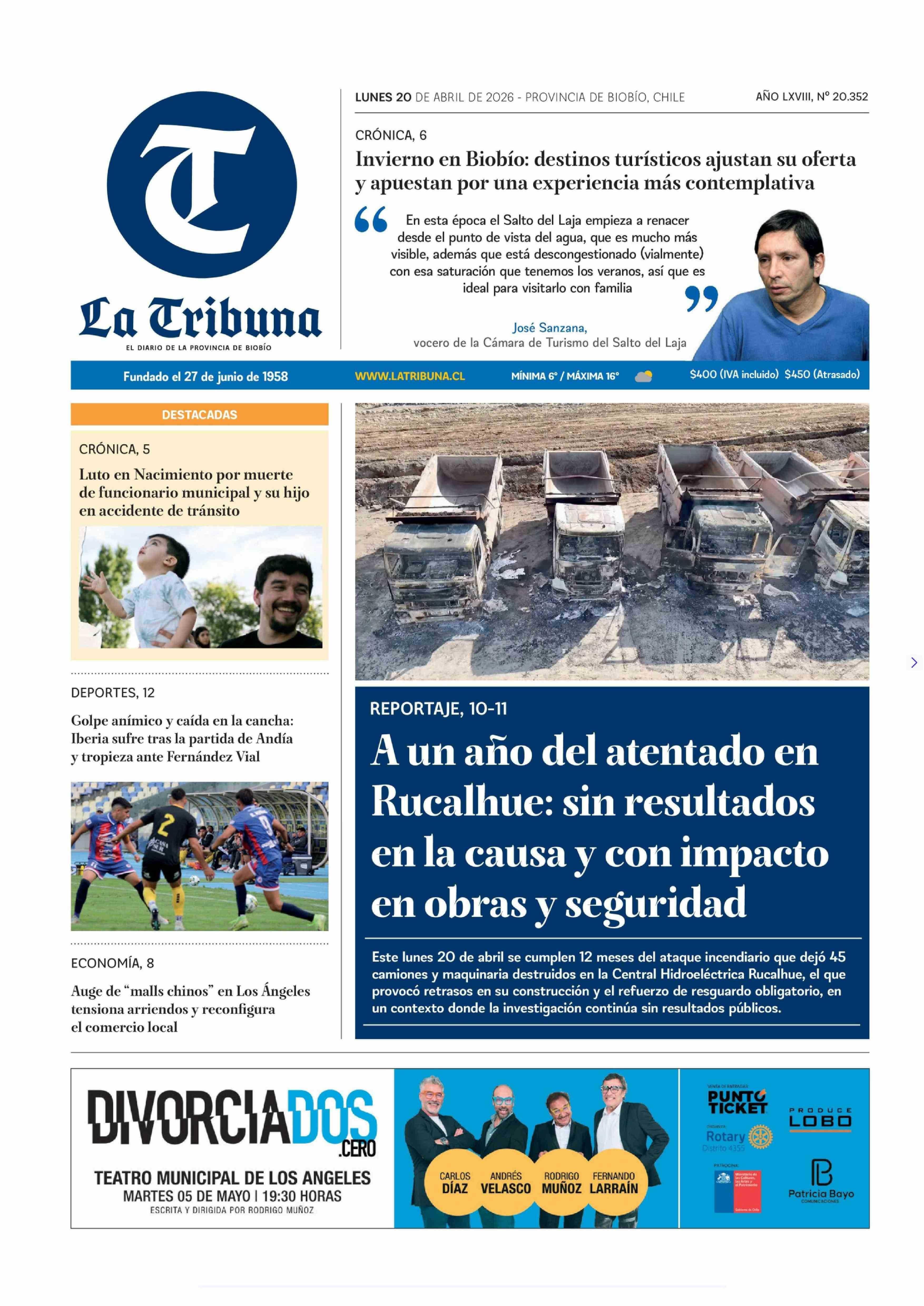 PORTADA LA TRIBUNA CHILE 20-04-2026 La Tribuna |