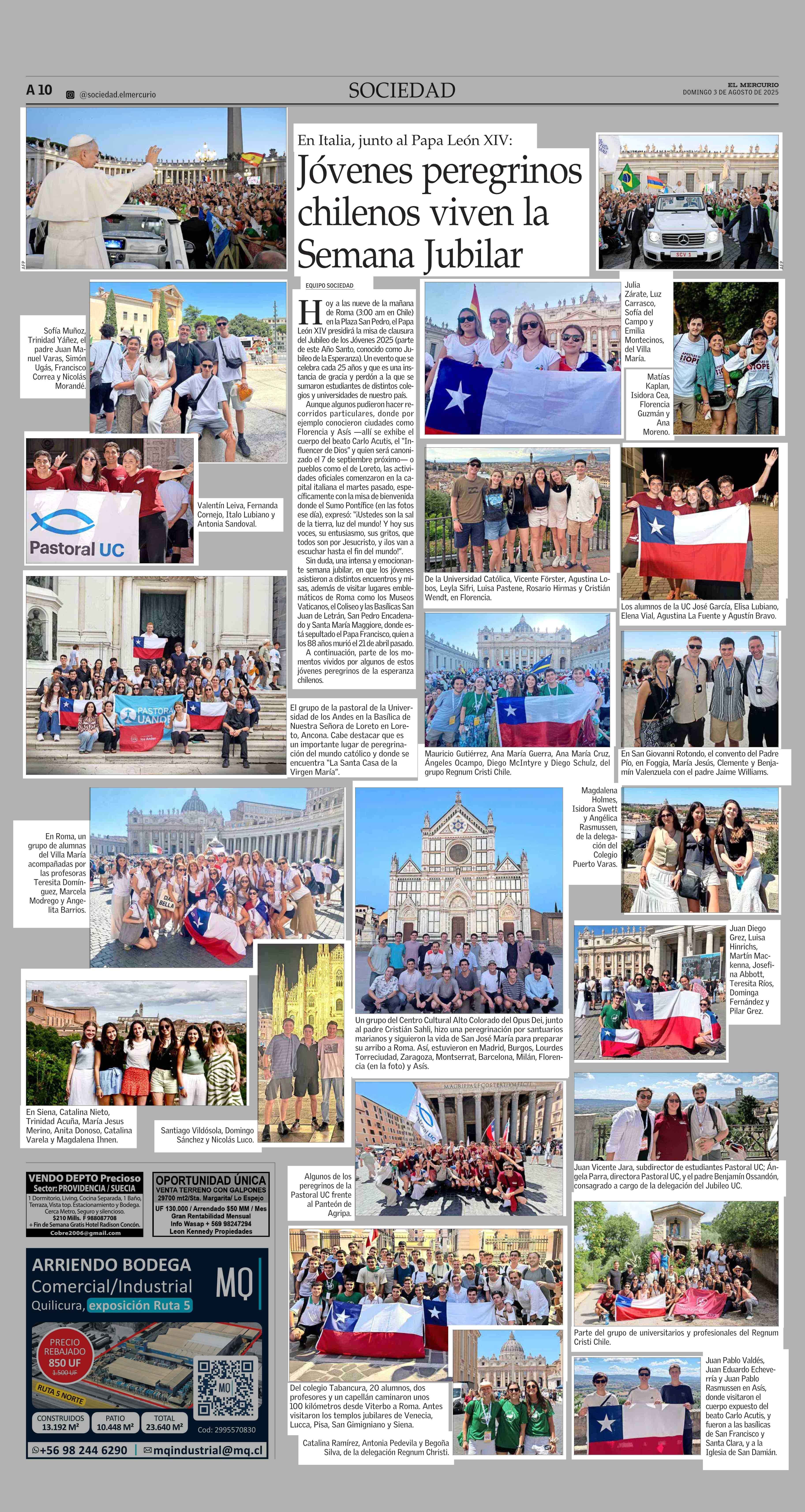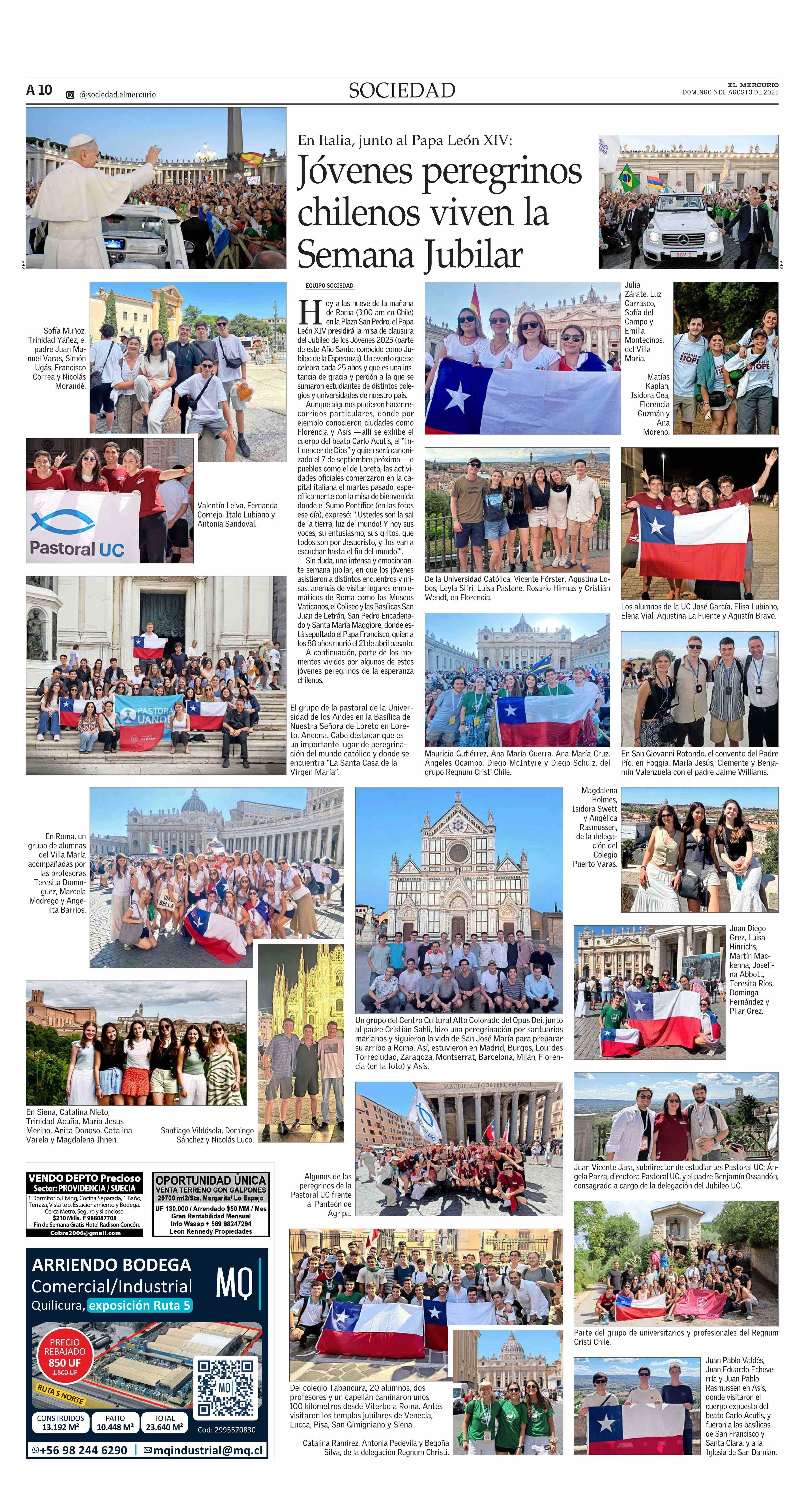 Jóvenes peregrinos chilenos viven la Semana Jubilar 03-08-2025 El Mercurio |