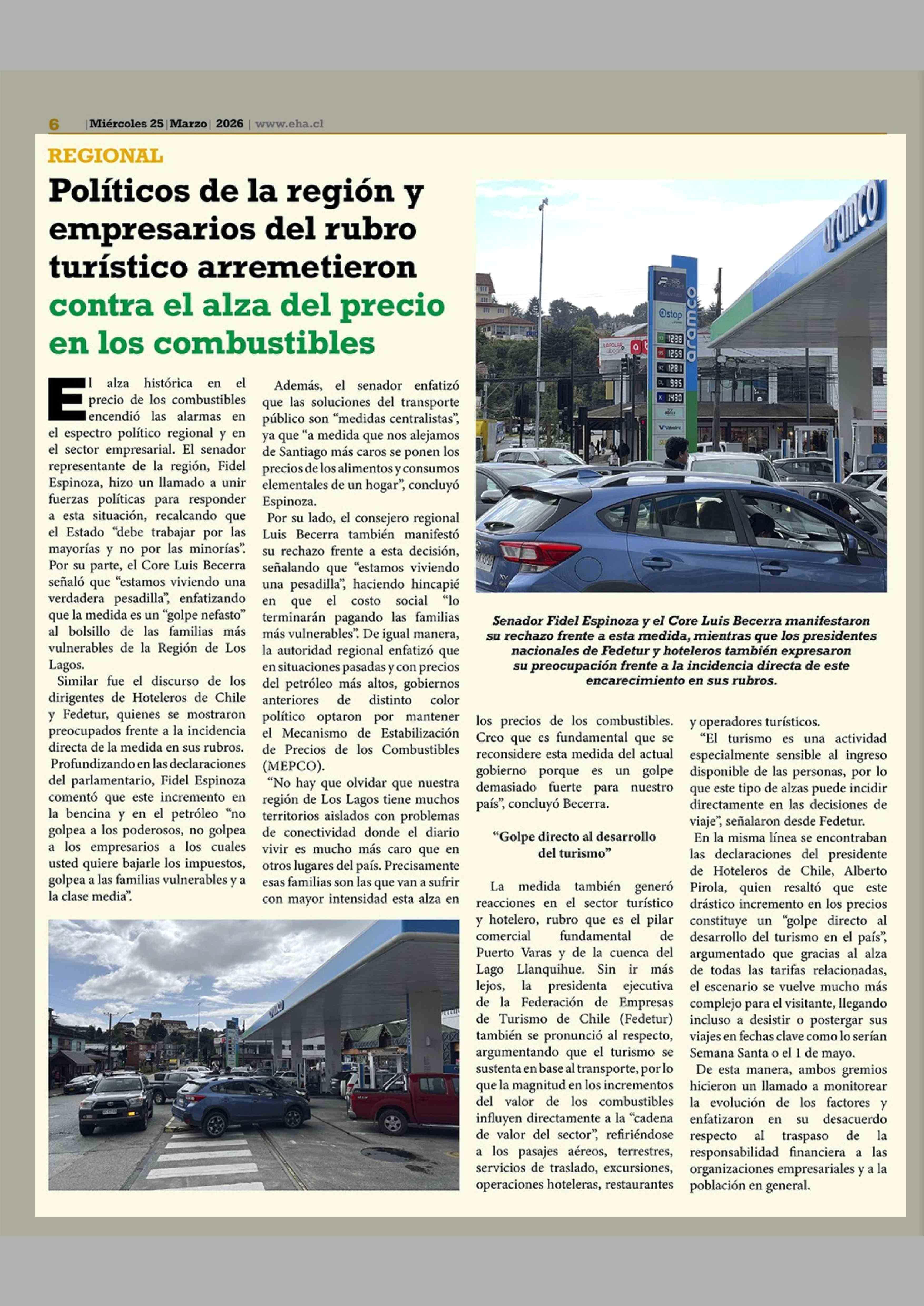 Políticos de la región y empresarios del rubro turístico arremetieron contra el alza del precio en los combustibles 25-03-2026 El Heraldo Austral |