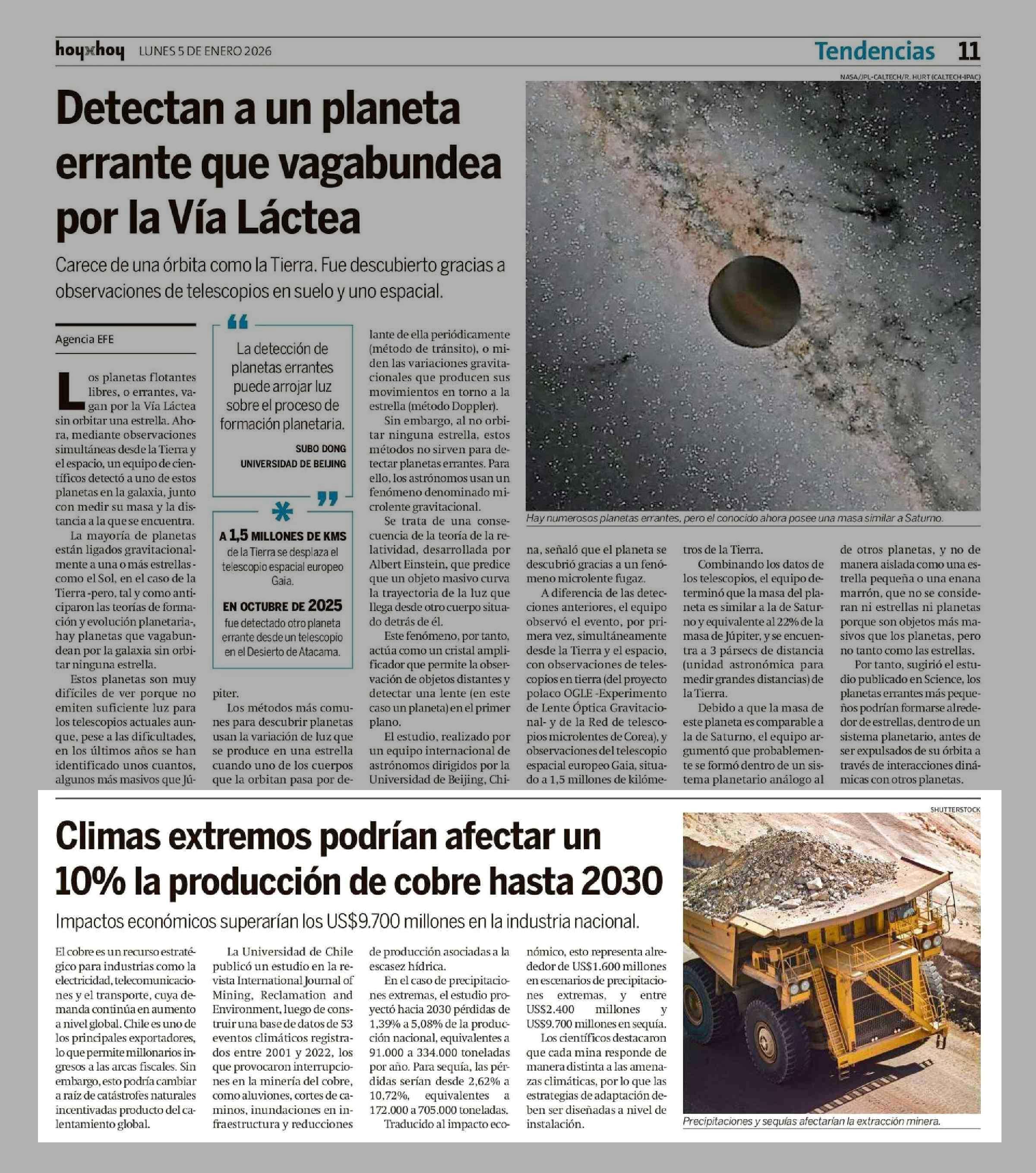 Climas extremos podrían afectar un 10% la producción de cobre hasta 2030 05-01-2026 Hoy x Hoy Concepción |