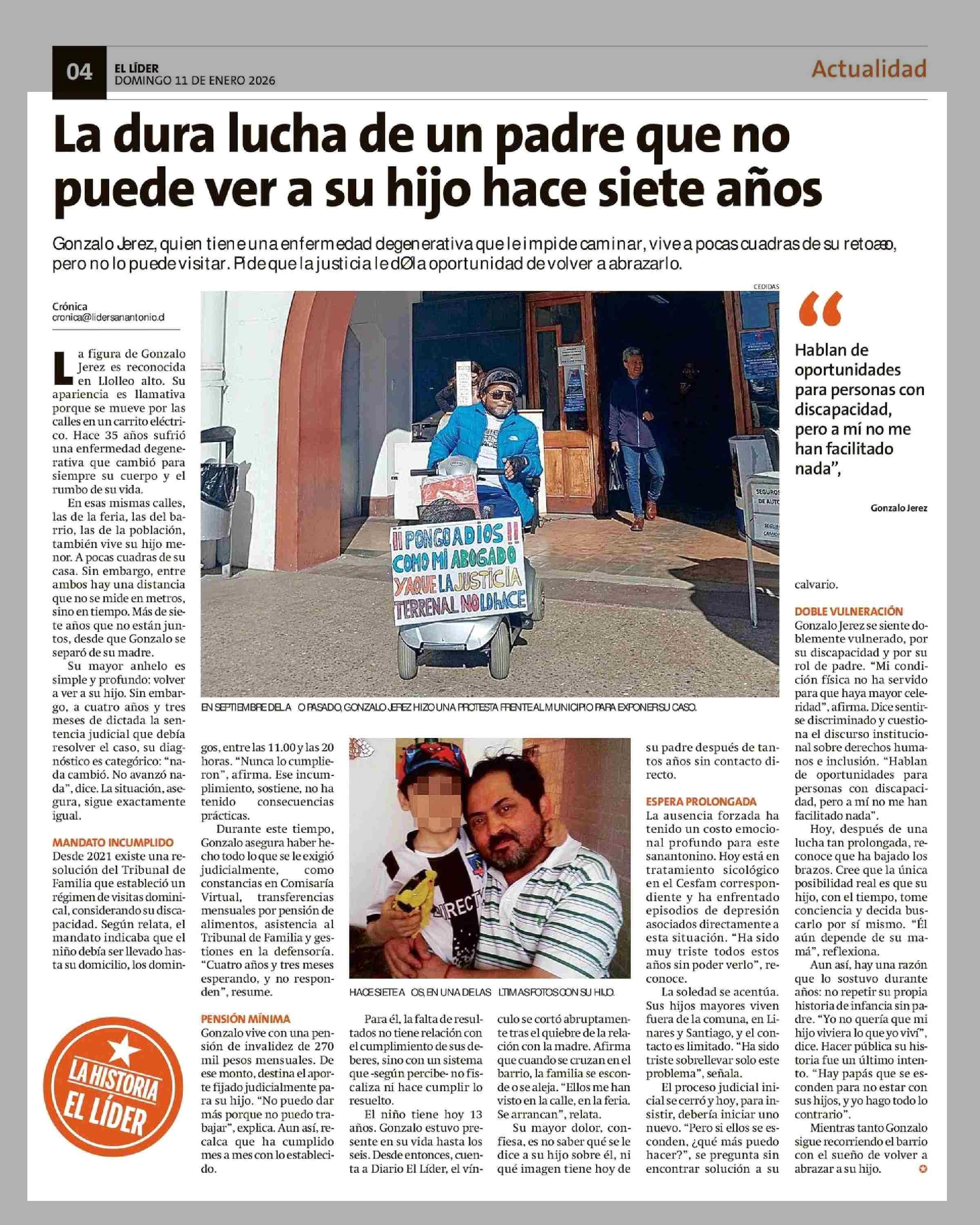 La dura lucha de un padre que no puede ver a su hijo hace siete años 11-01-2026 El Líder |