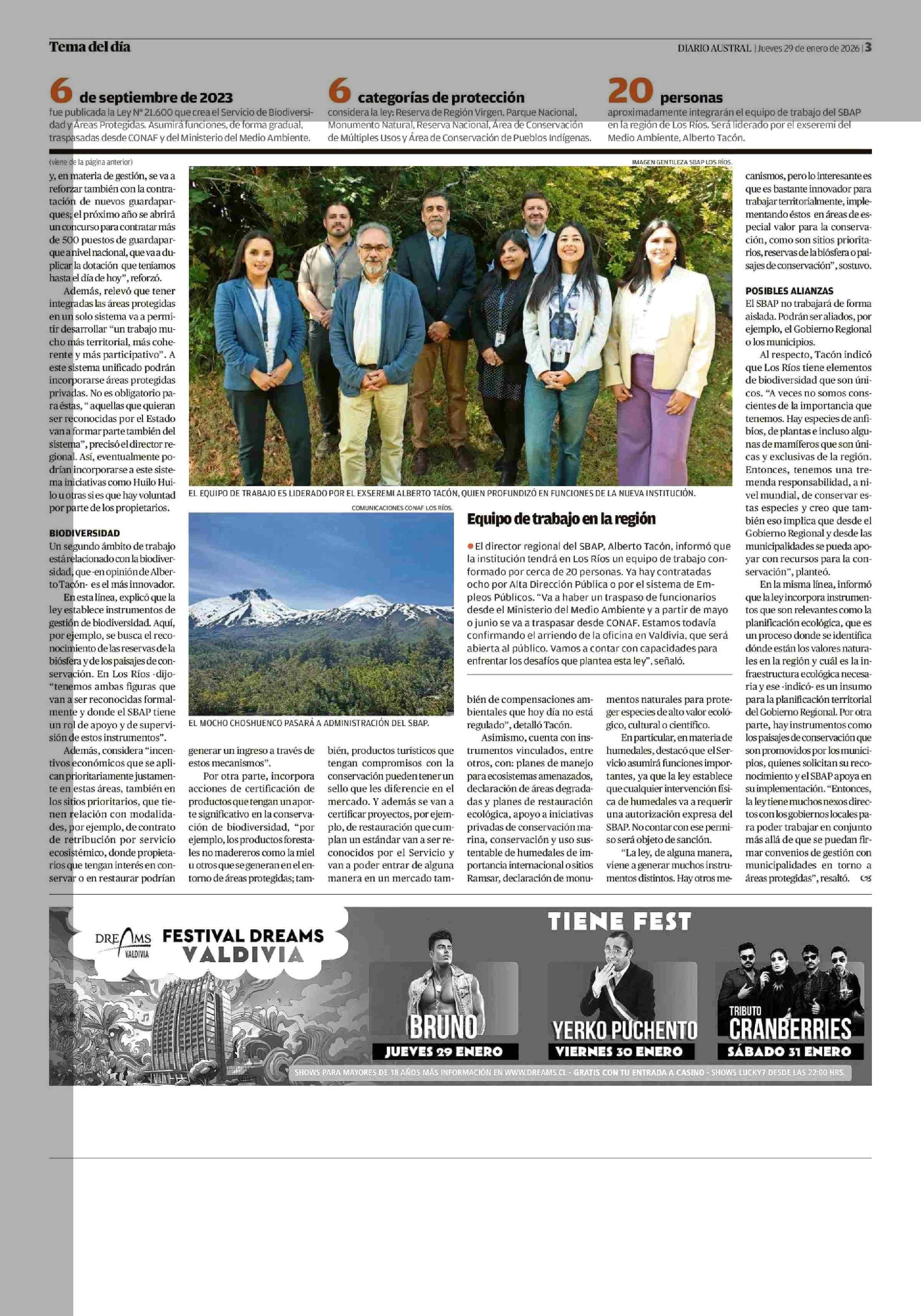 Este 1 de febrero comienza a operar el nuevo Servicio de Biodiversidad 29-01-2026 Diario Austral Región de Los Ríos |