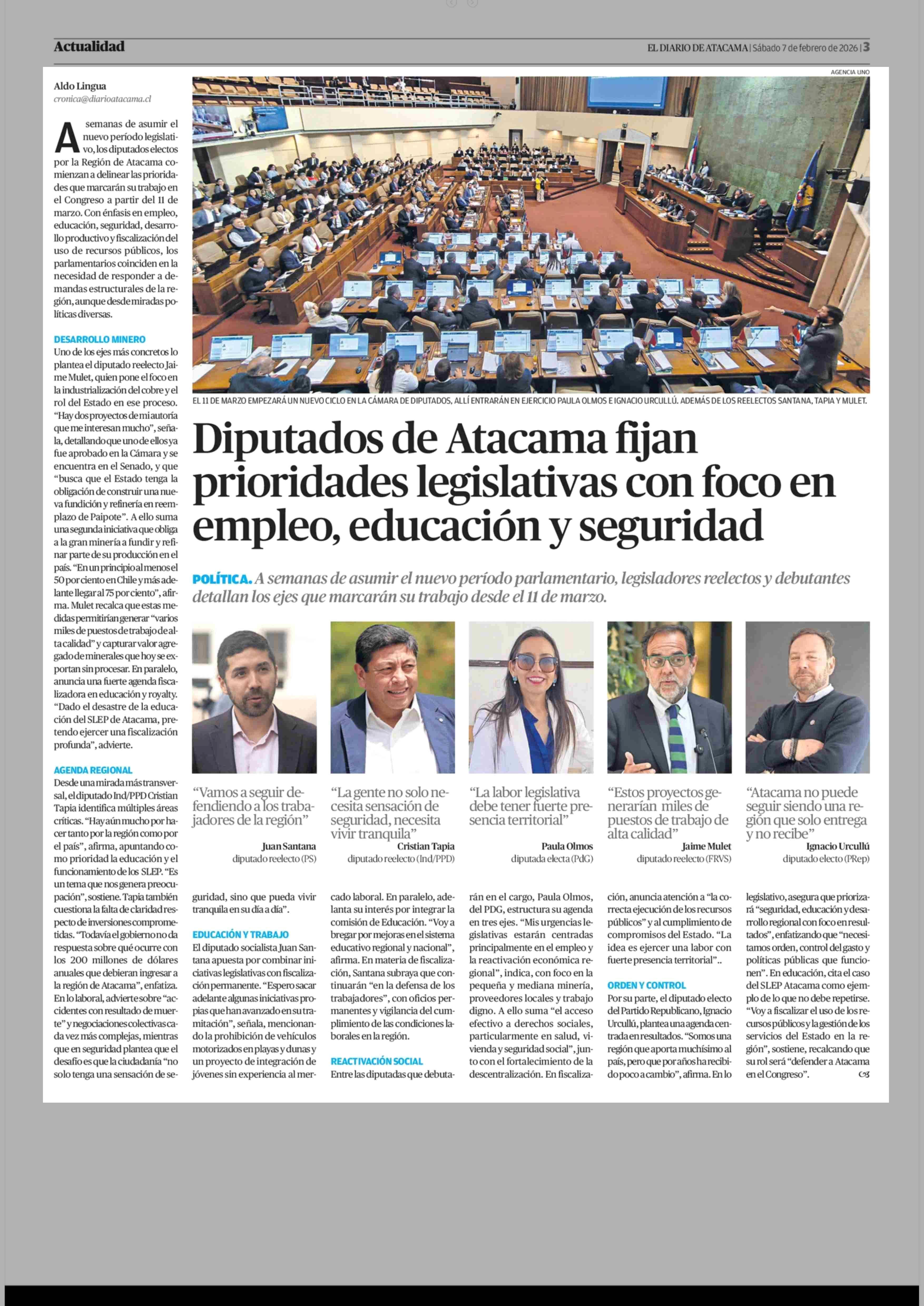 Título: Diputados de Atacama fijan prioridades legislativas con foco en empleo, educación y seguridad