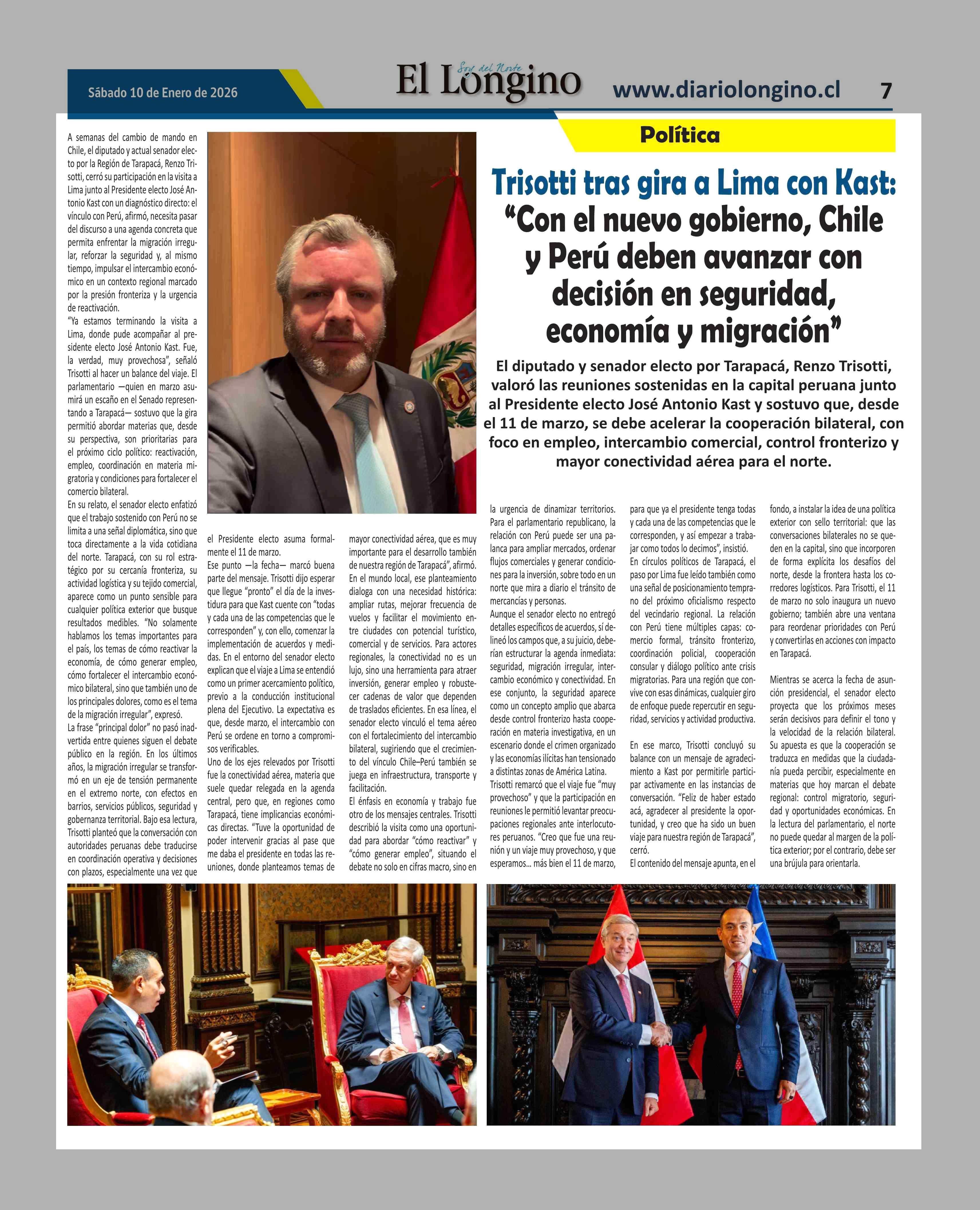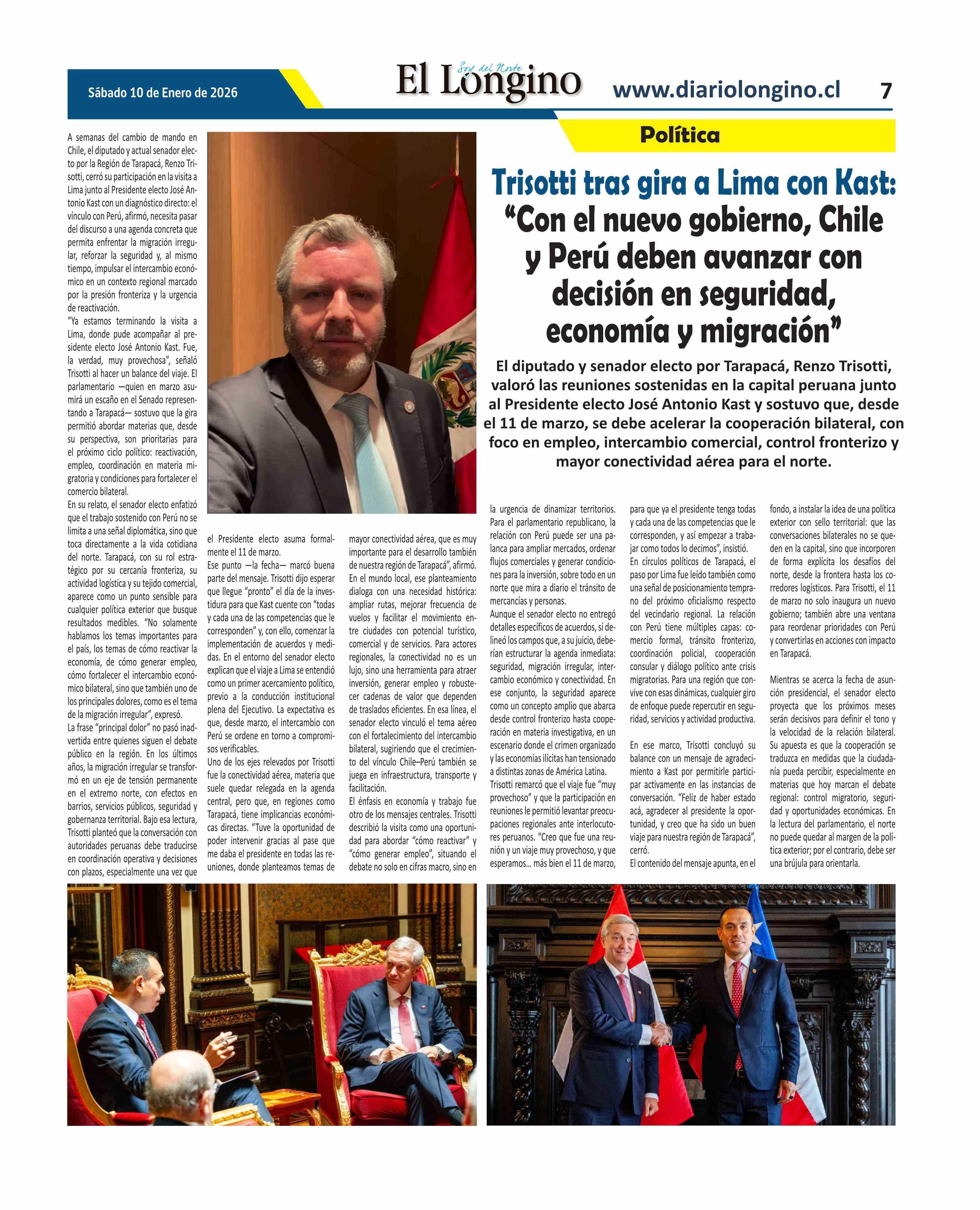 Título: Trisotti tras gira a Lima con Kast: "Con el nuevo gobierno, Chile y Perú deben avanzar con decisión en seguridad, economía y migración'
