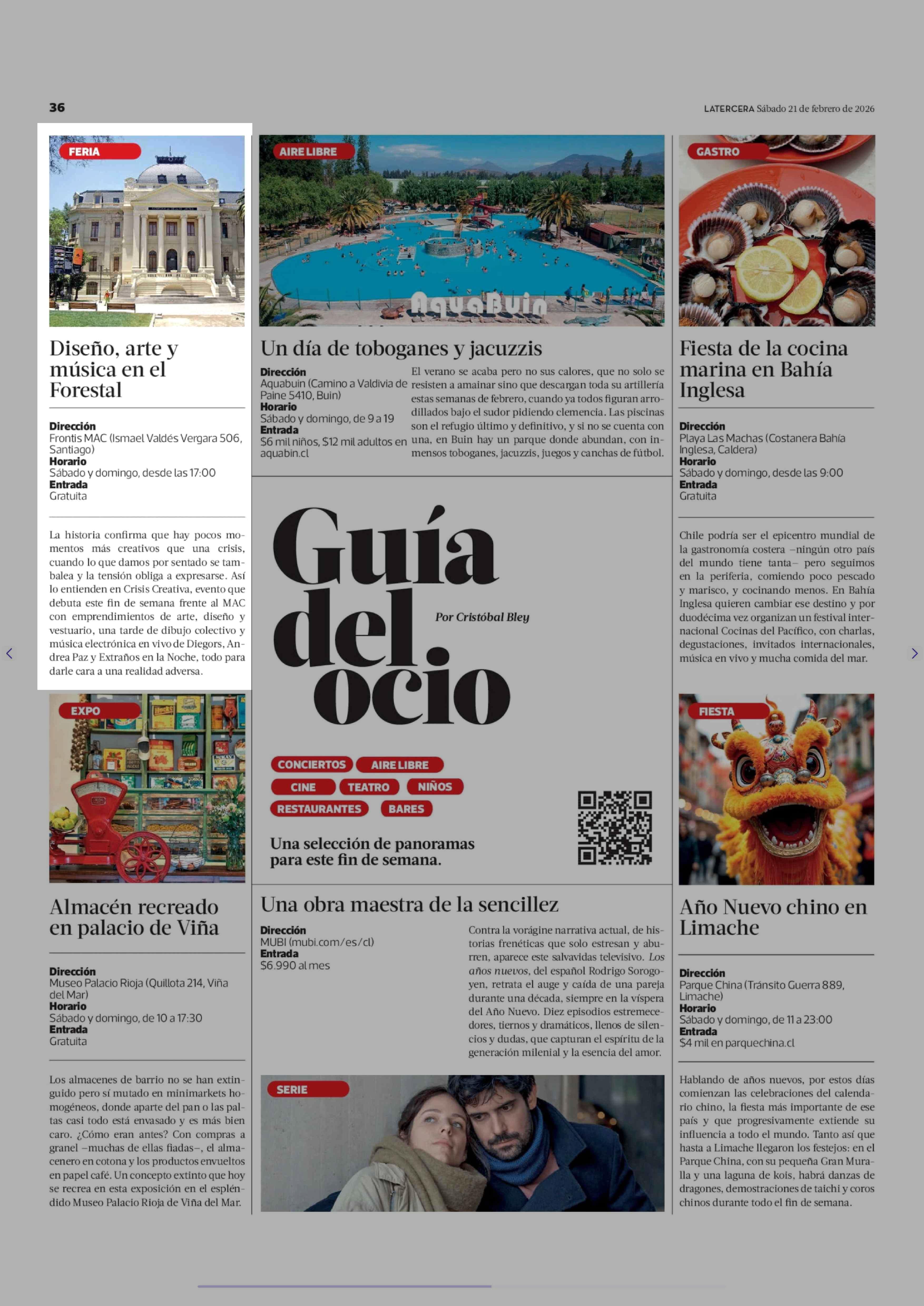 Diseño, arte y música en el Forestal 21-02-2026 La Tercera |