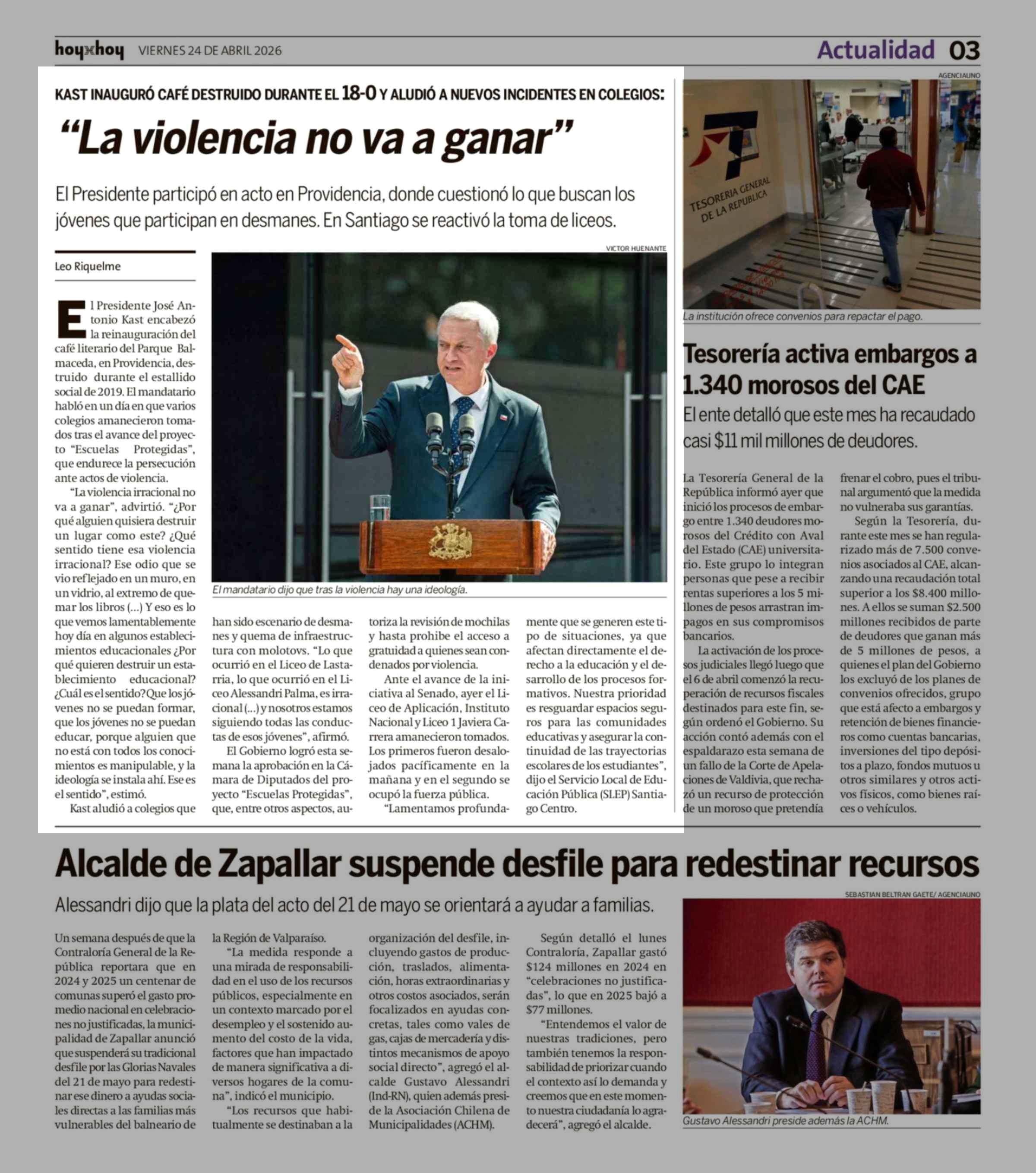 "La violencia no va a ganar" 24-04-2026 Hoy x Hoy |