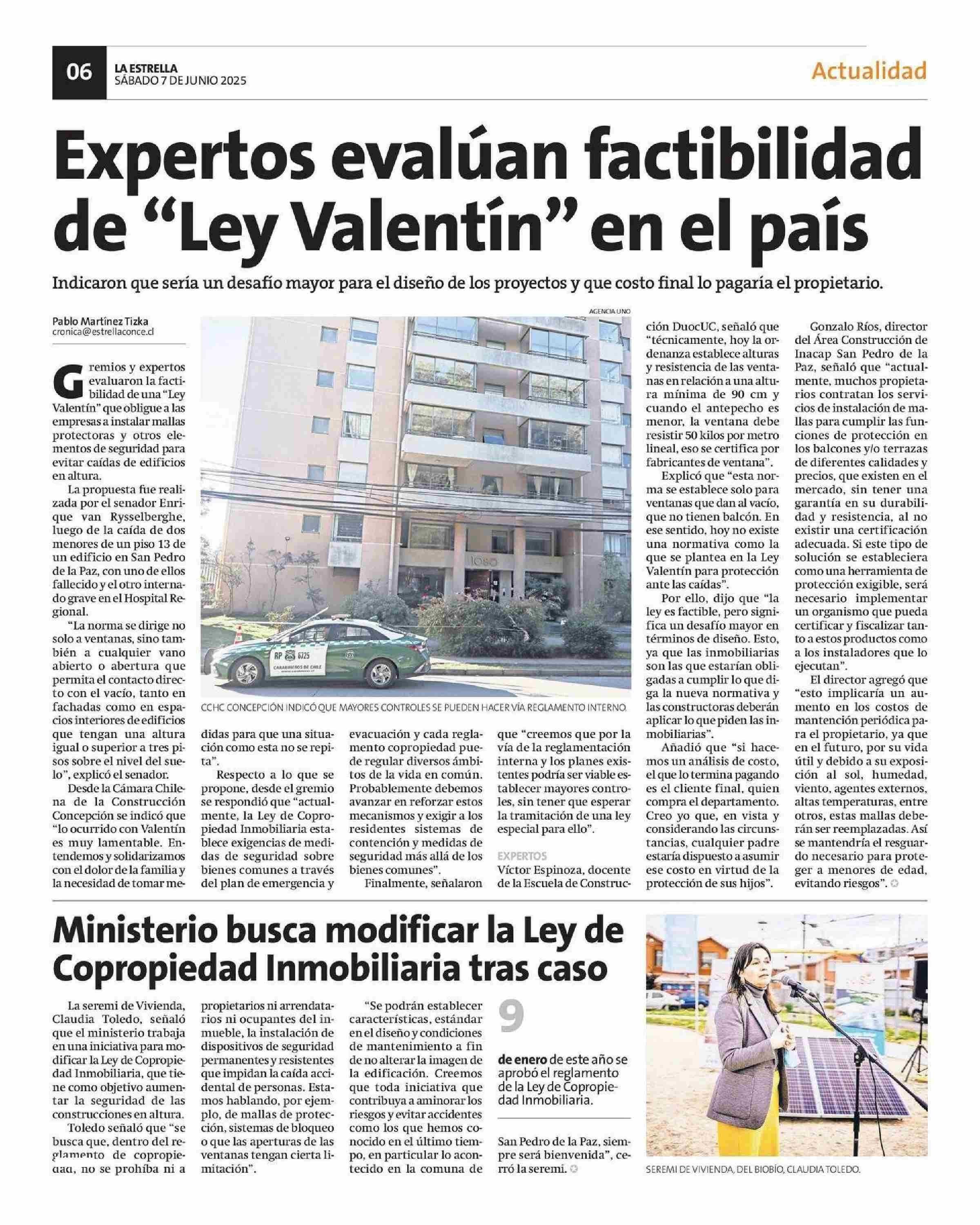 Expertos evalúan factibilidad de "Ley Valentín" en el país 07-06-2025 La Estrella de Concepción |