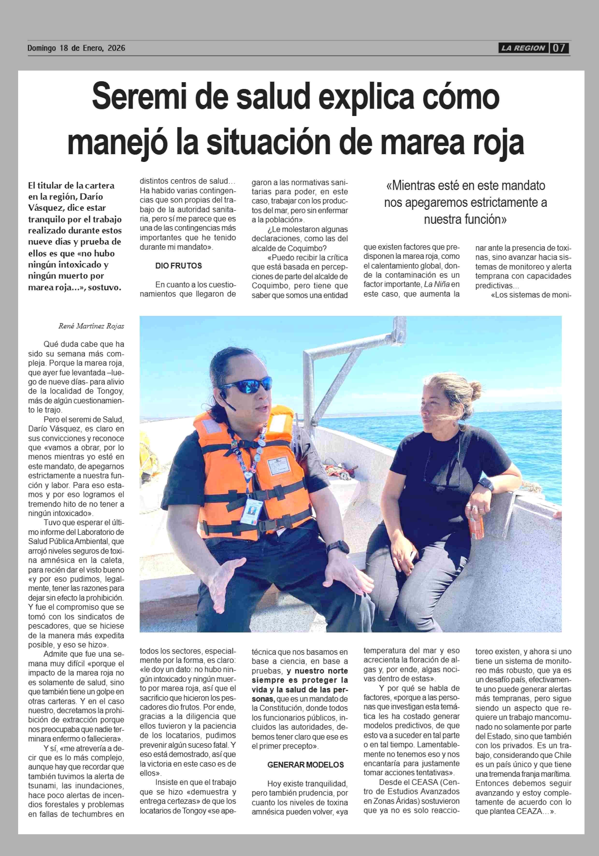 Seremi de salud explica cómo manejó la situación de marea roja 18-01-2026 Diario la Región |