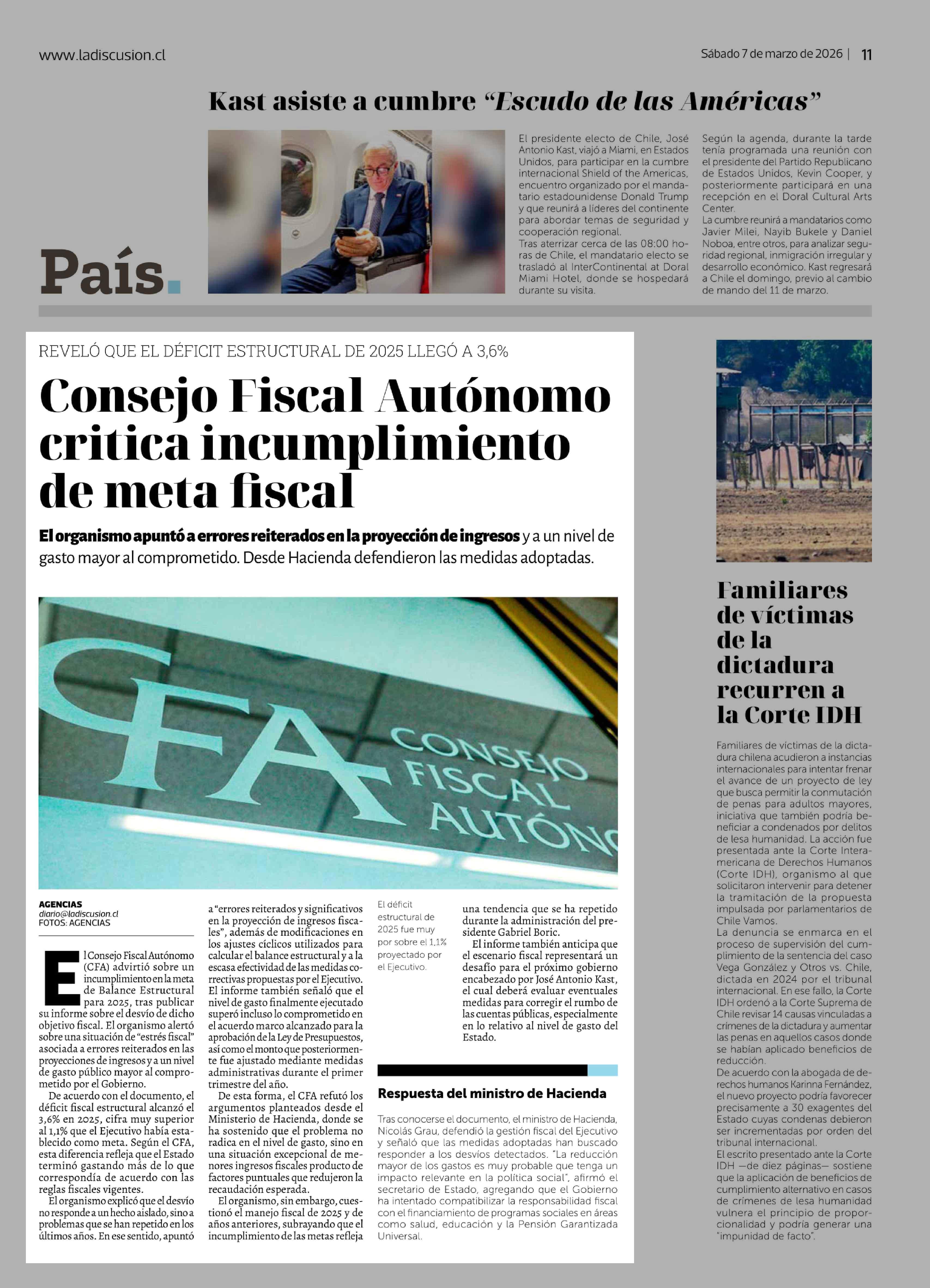 Consejo Fiscal Autónomo critica incumplimiento de meta fiscal 07-03-2026 La Discusión |
