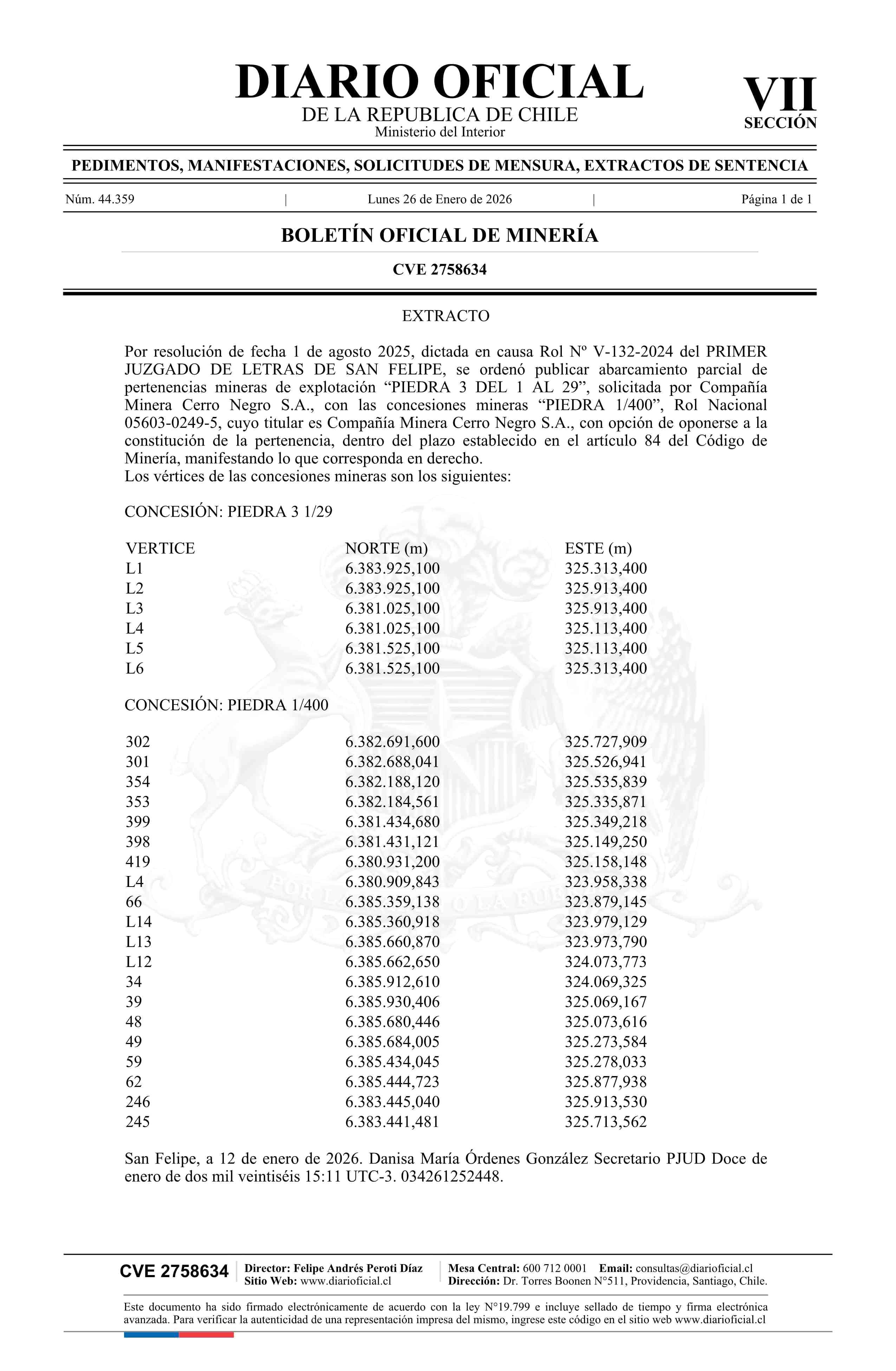 26-01-2026 DIARIO OFICIAL CHILE - BOLETÍN OFICIAL DE MINERÍA