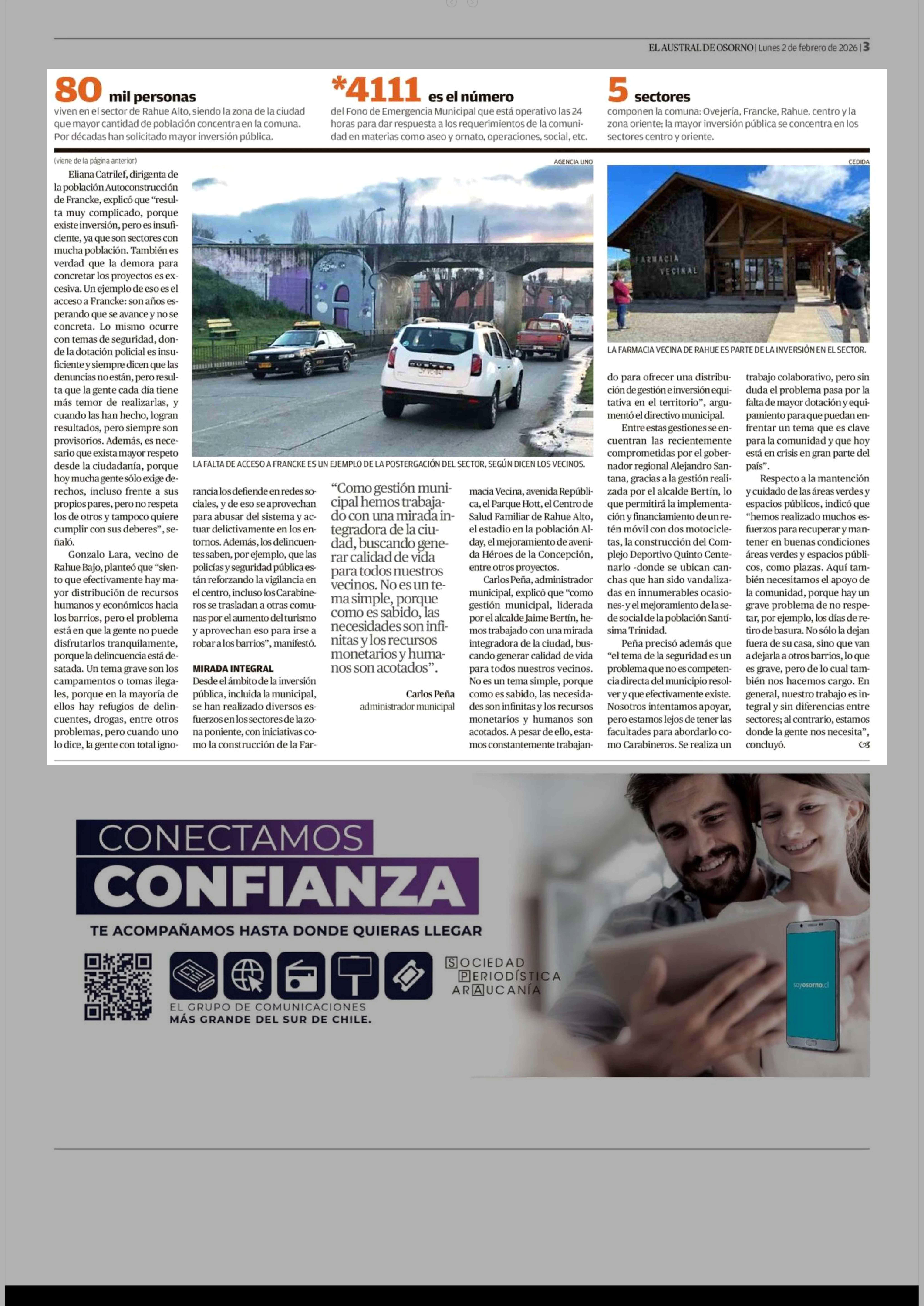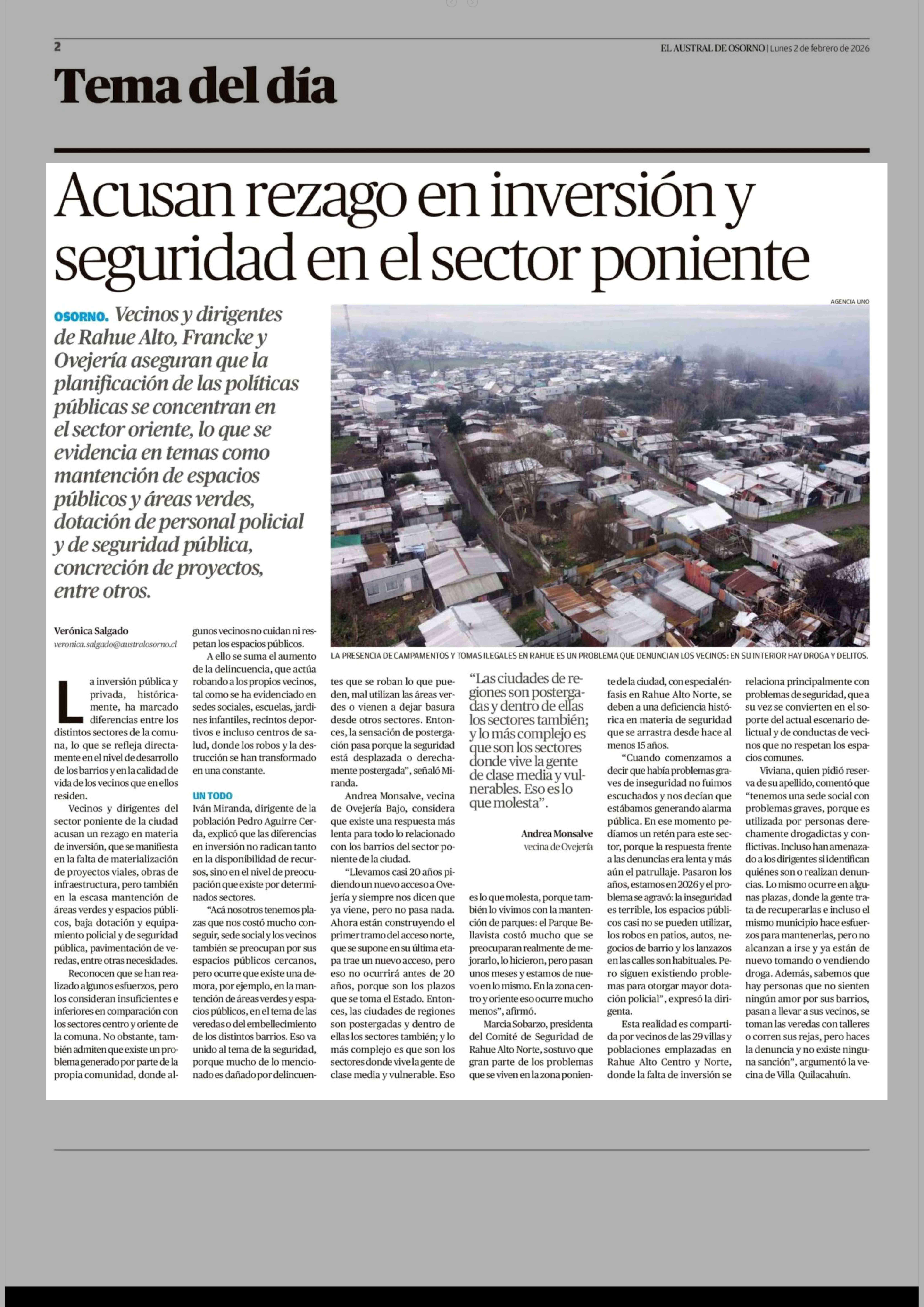Acusan rezago en inversión y seguridad en el sector poniente 02-02-2026 El Austral de Osorno |