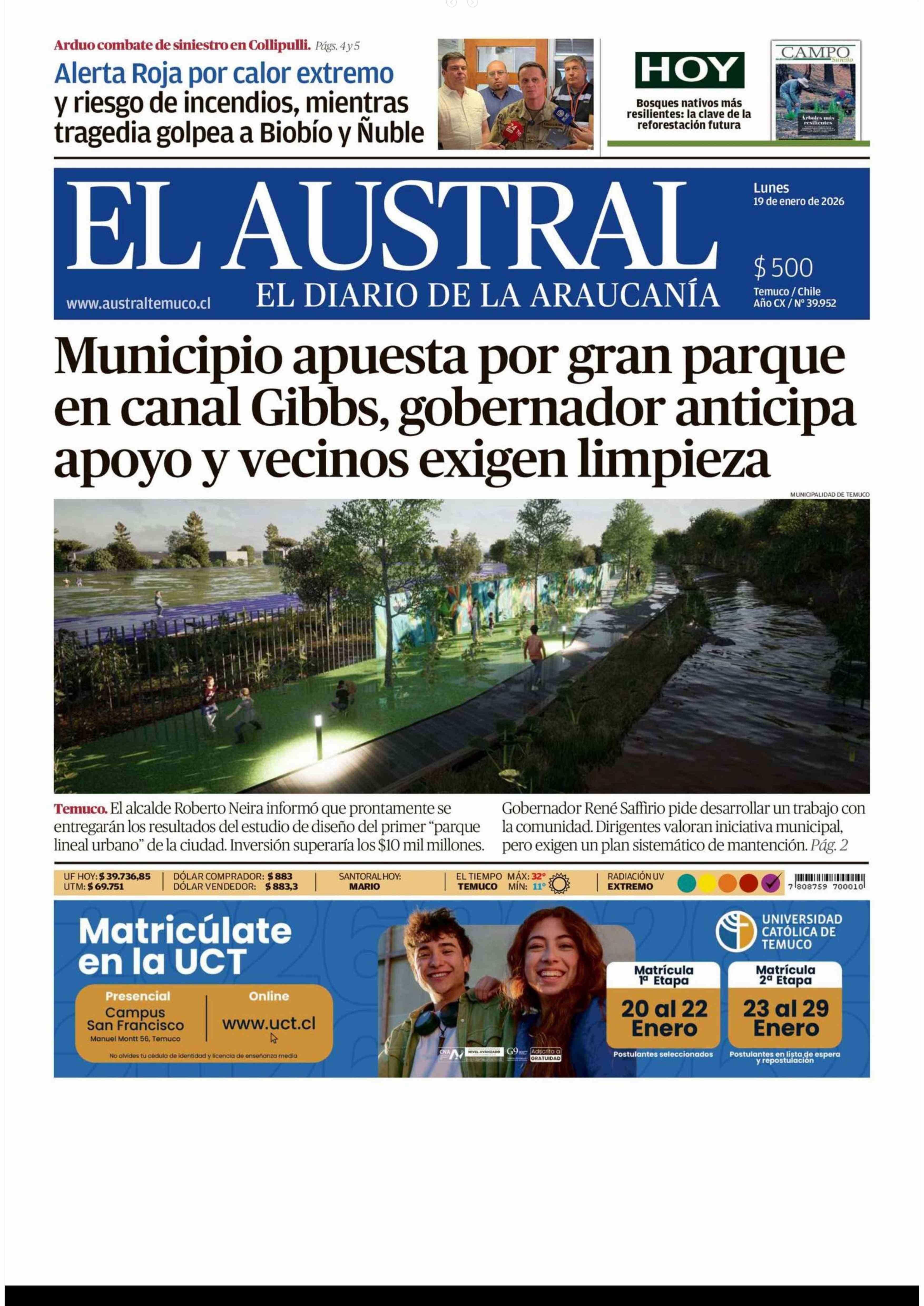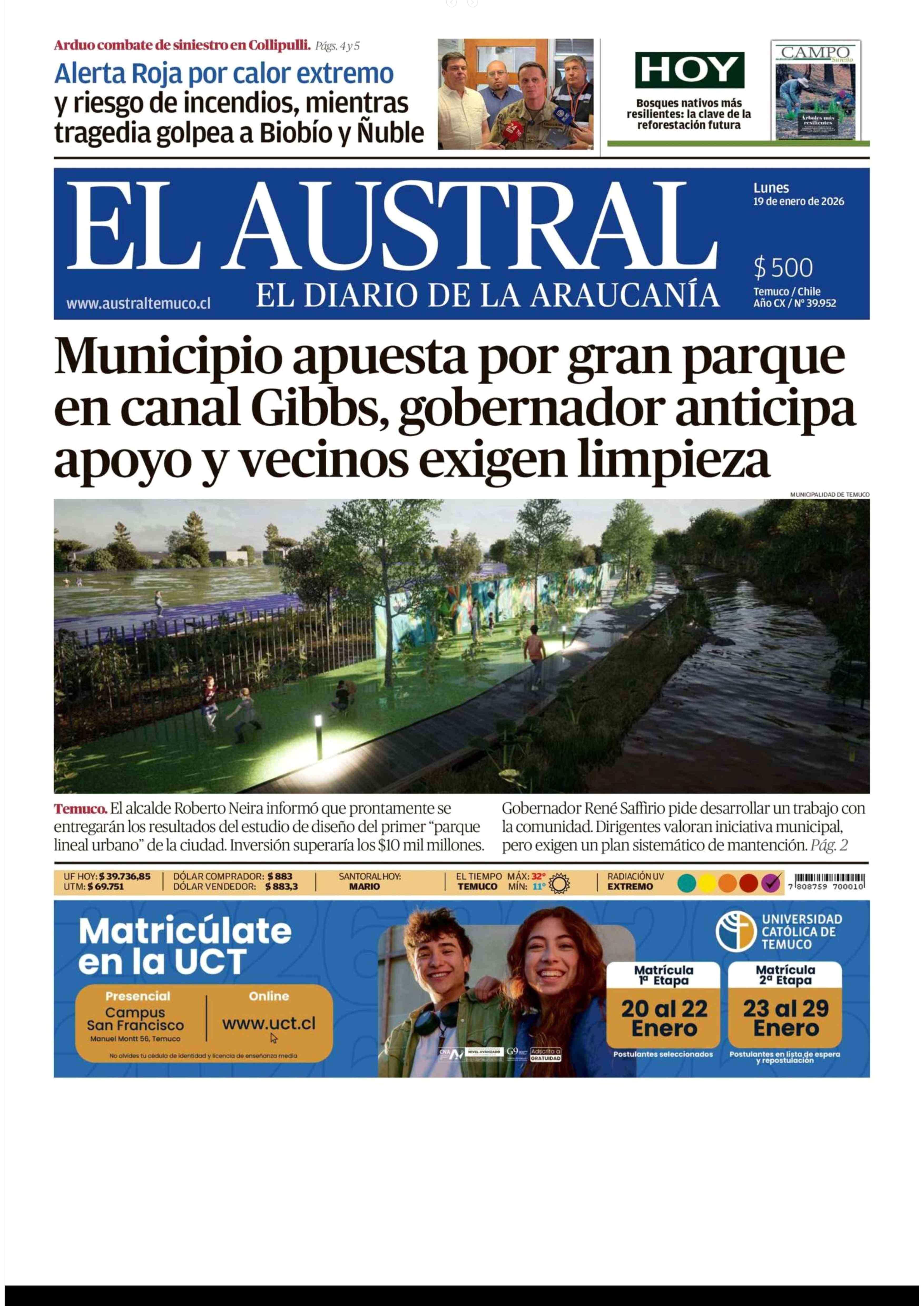 Fecha: 19-01-2026 Sector: Portada Región: Región de la Araucanía